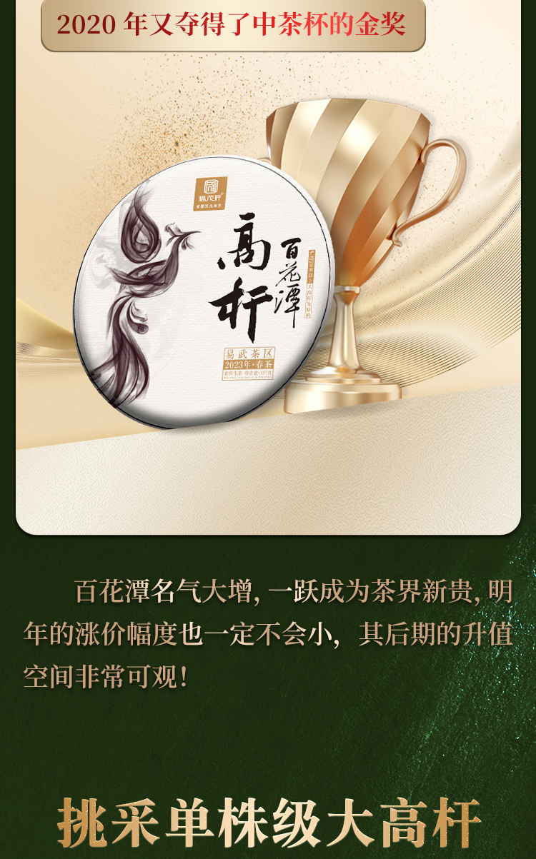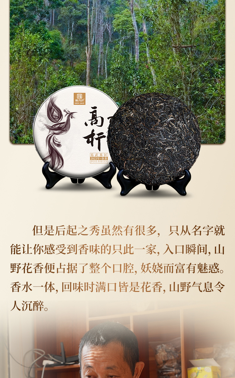 【百花潭高杆】稀世高杆 凤毛麟角 3泡知磅礴山野气韵 2023年春茶易武茶区百花潭20米以上高杆普洱生茶古树茶饼357g