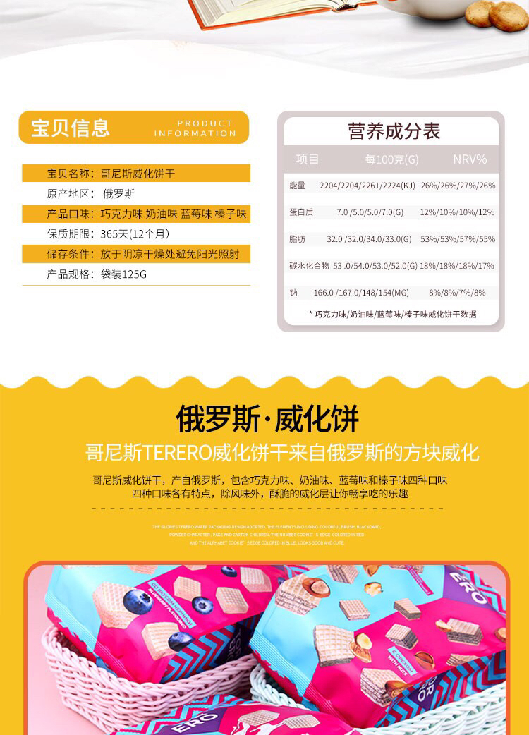 哥尼斯进口-威化饼干零食哥尼斯榛子蓝莓奶油巧克力夹心饼125g-会员8折