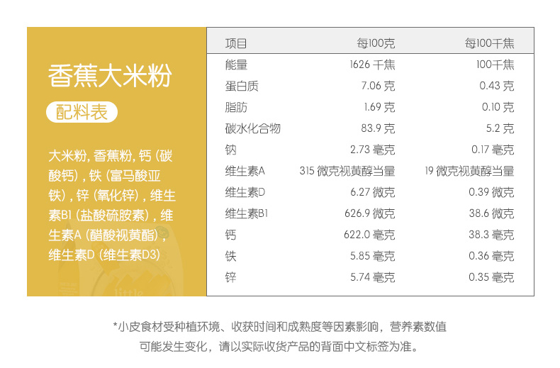 小皮高铁香蕉/大米/蓝莓香蕉/小麦胚糙米谷物/小麦胚糙米谷物大米粉
