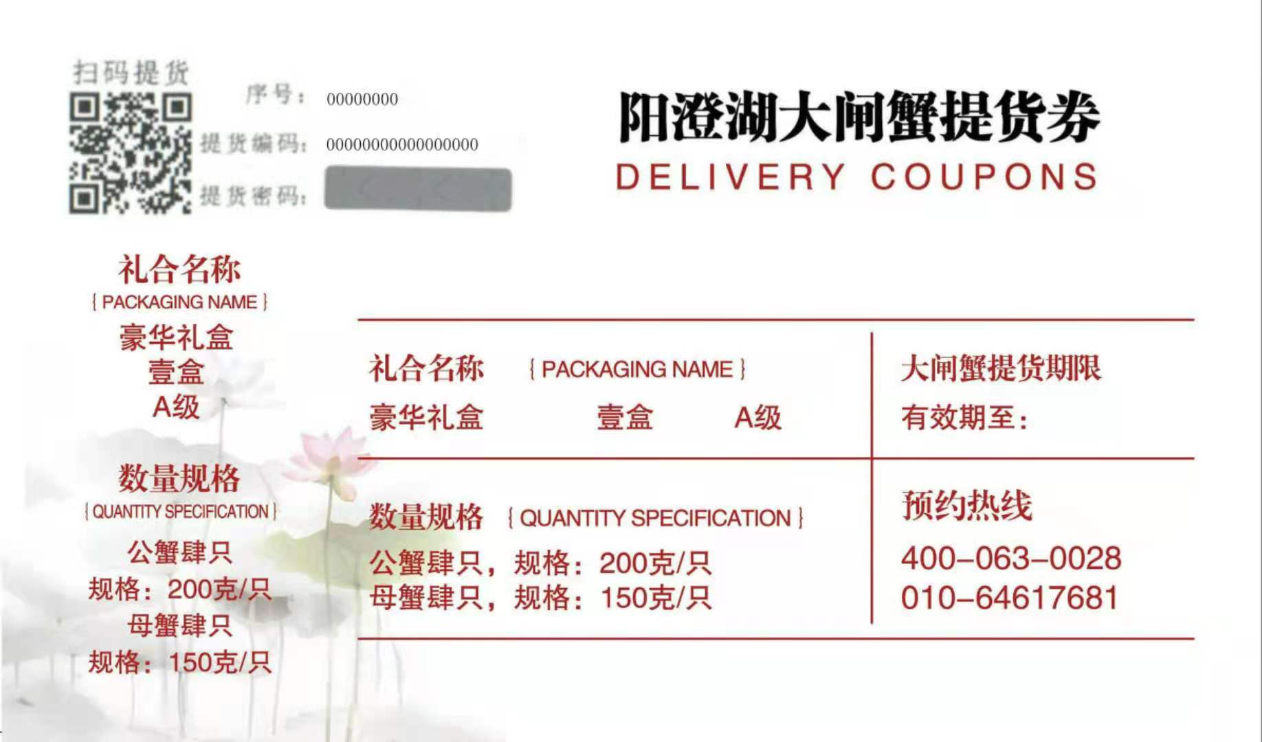 阳澄湖大闸蟹豪华蟹券 (公蟹4只,每只200g;母蟹4只,每只150g)