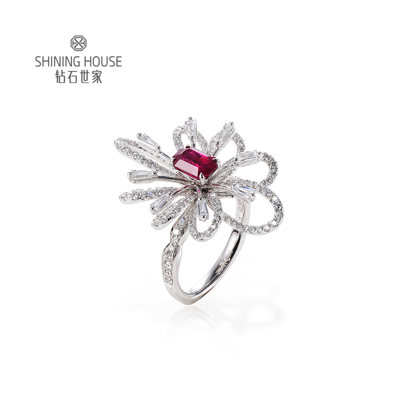 【红宝石戒指】钻石世家 18K金红宝石镶钻戒指 高级设计珠宝系列 让人一见倾心的红宝石 演绎女性的高贵柔情 也寓意着浪漫炙热的美好感情