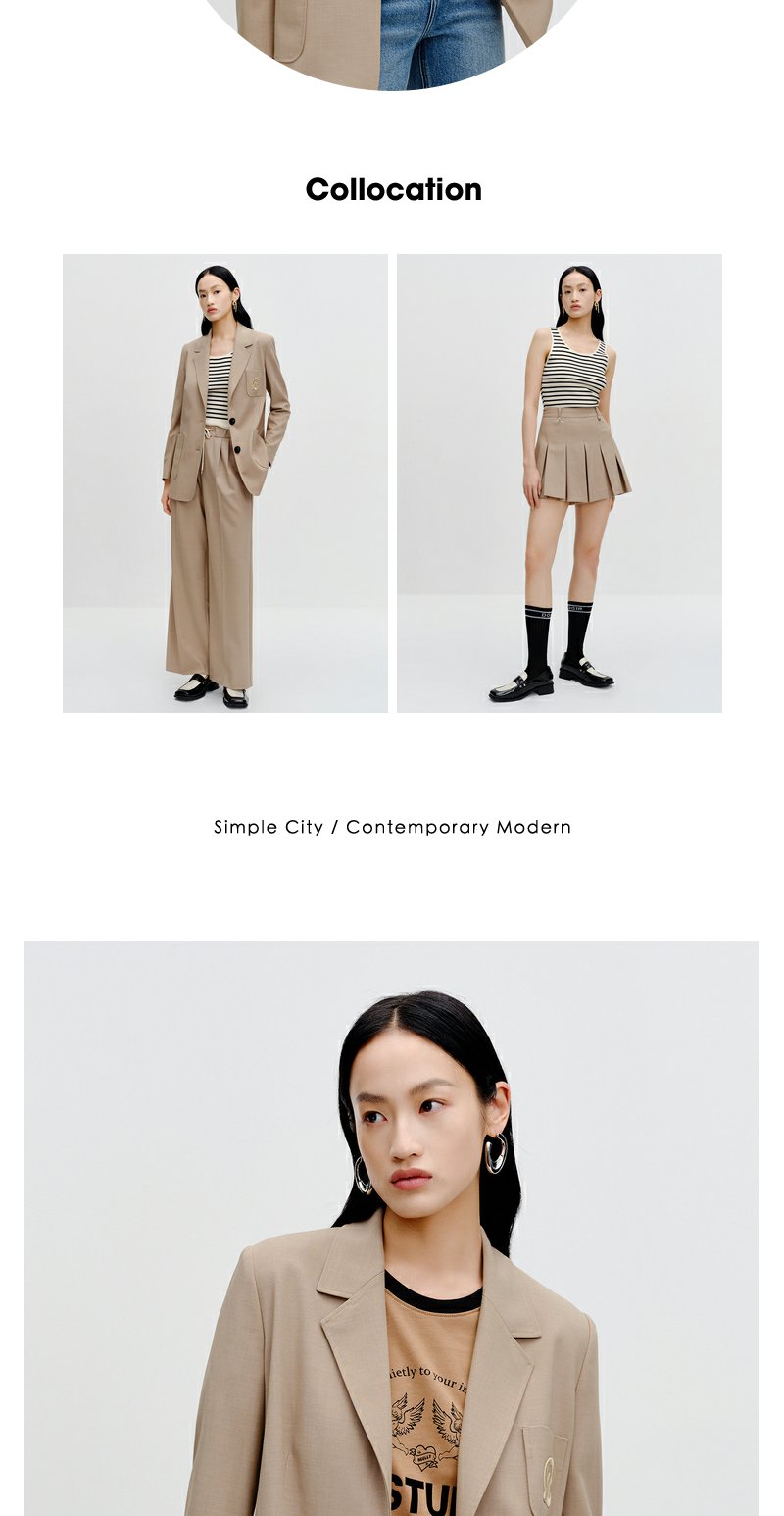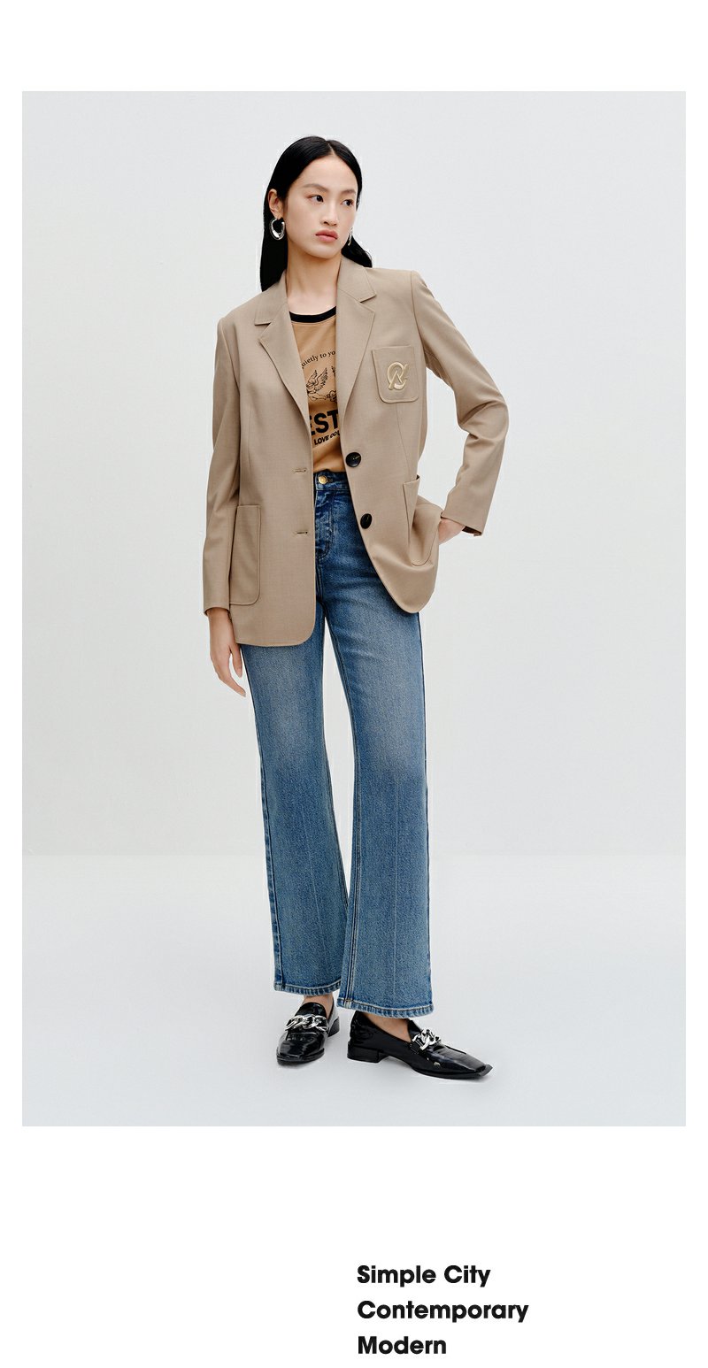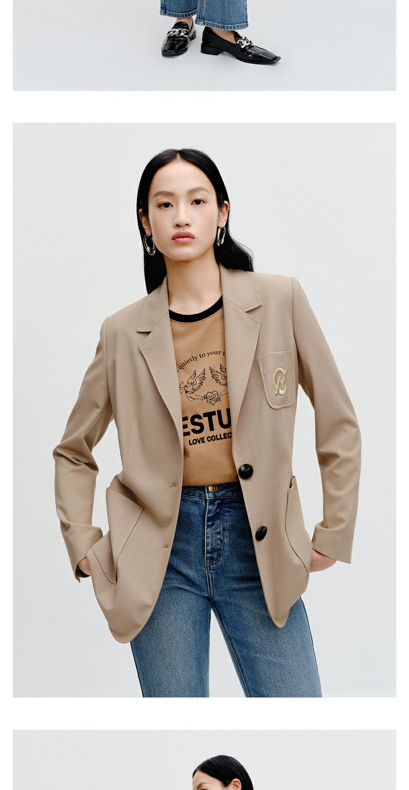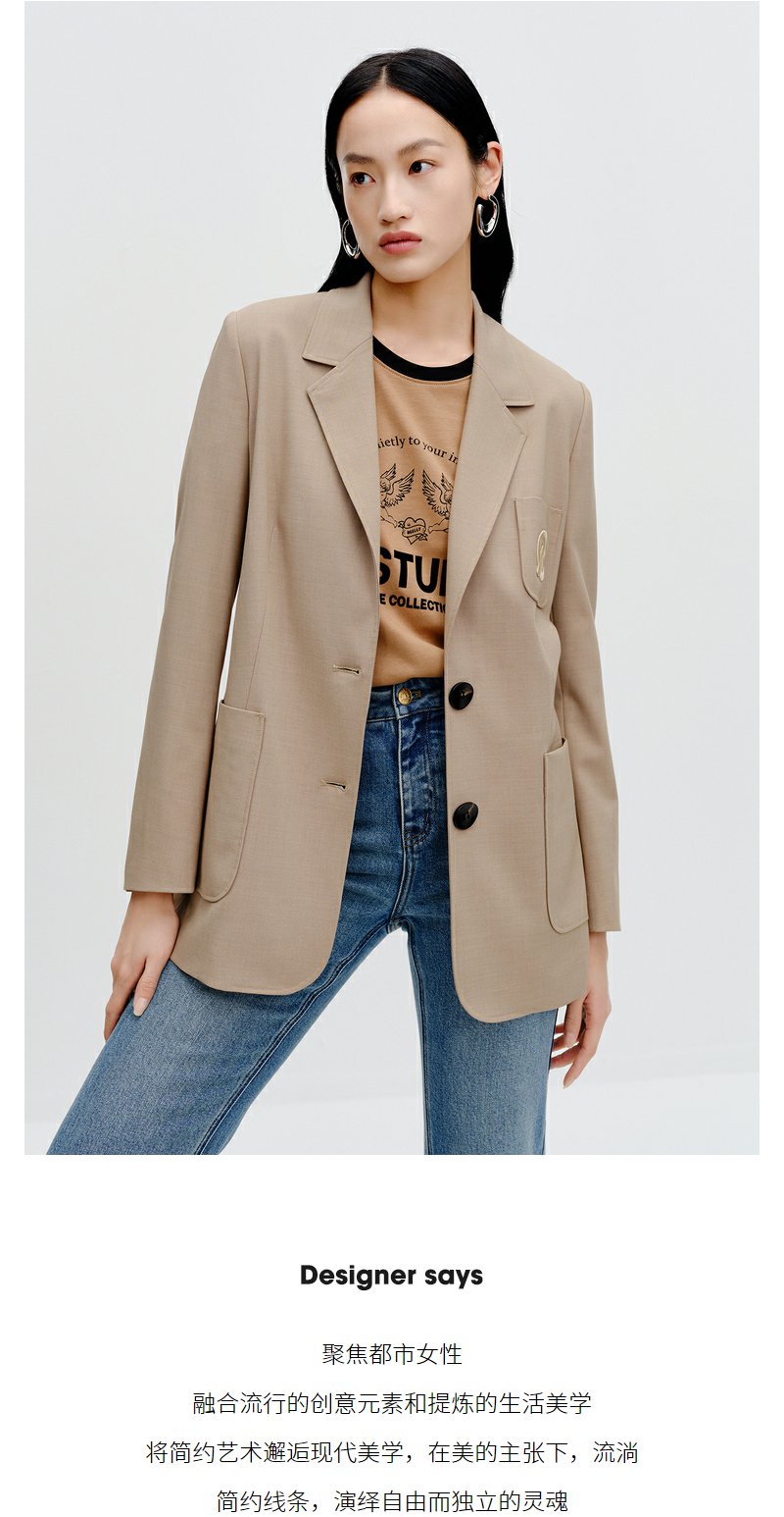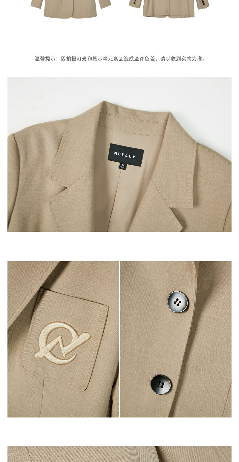 NEELLY纳俪商场同款卡其色西装外套秋季新款高级感休闲气质小西服N23081W01080