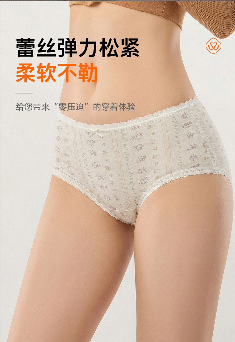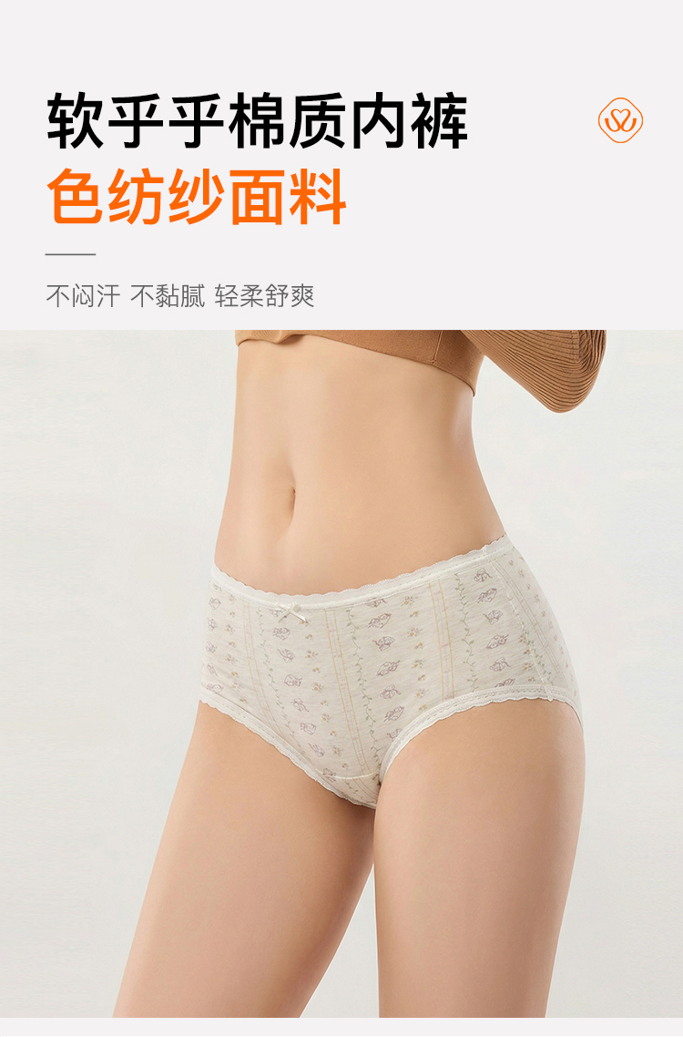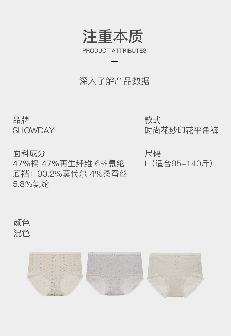 【满4条/7.5折】(中版)【秀黛】女时尚花纱印花平角裤棉质色纺纱印花蕾丝透气舒适女士内裤【1条】W5333606T【门店同款】【内裤非质量问题不退款,介意勿拍】