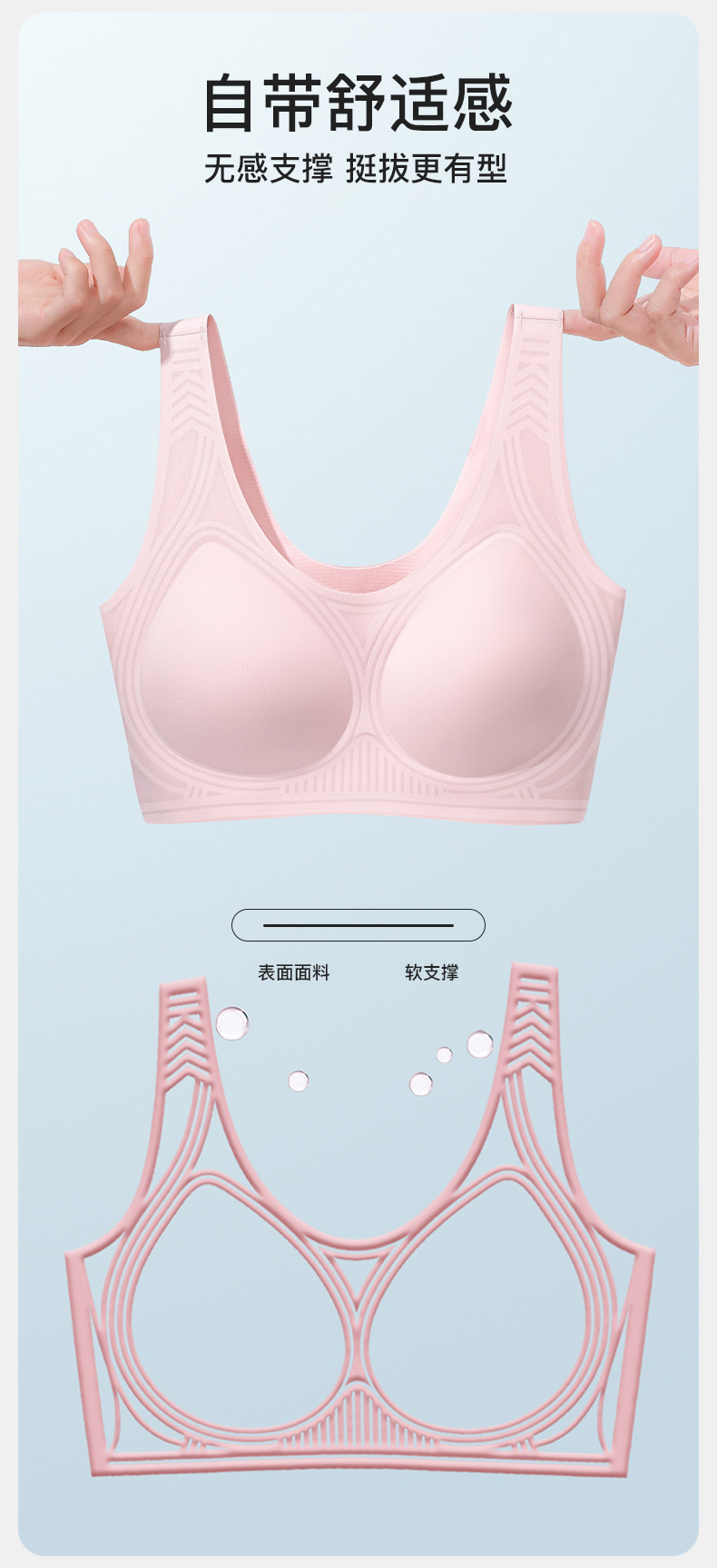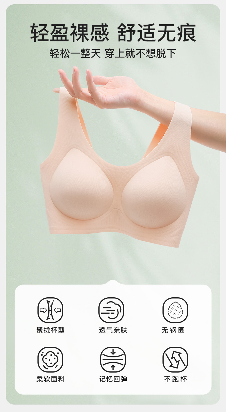爱帝女士果冻胶防滑定型无痕无钢圈背心式文胸