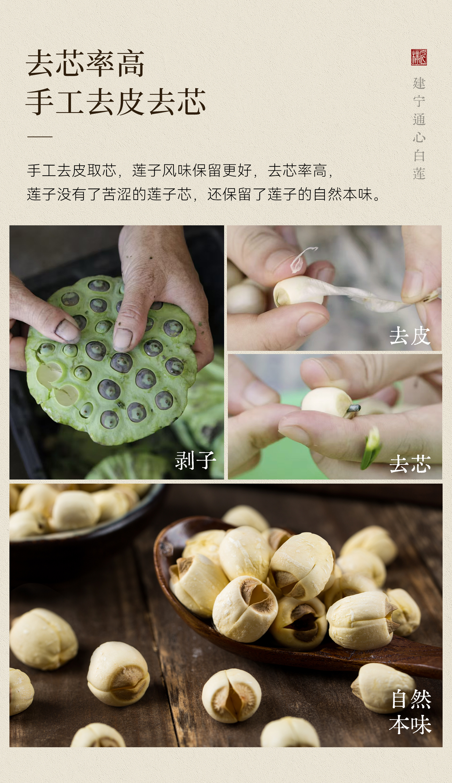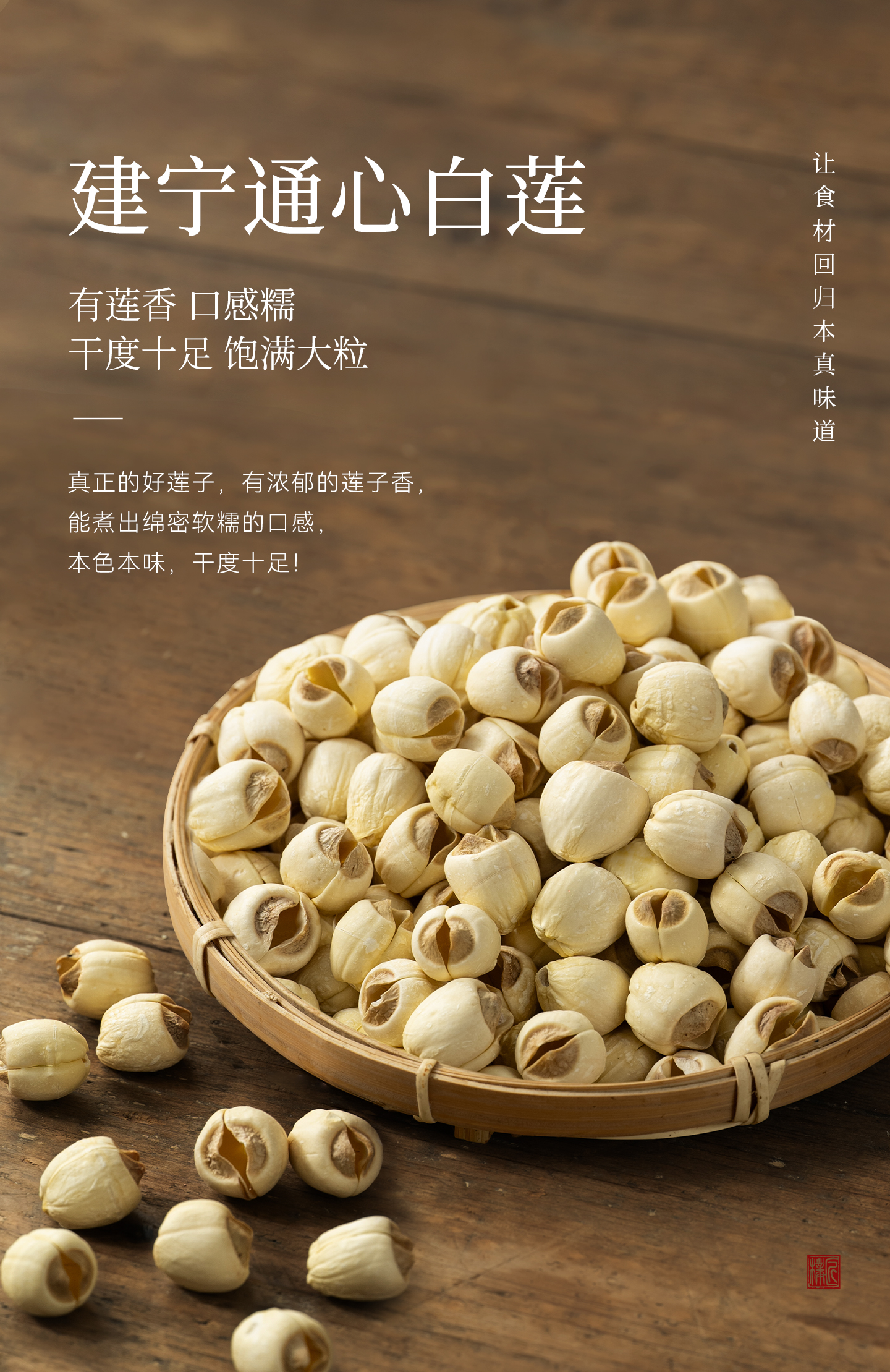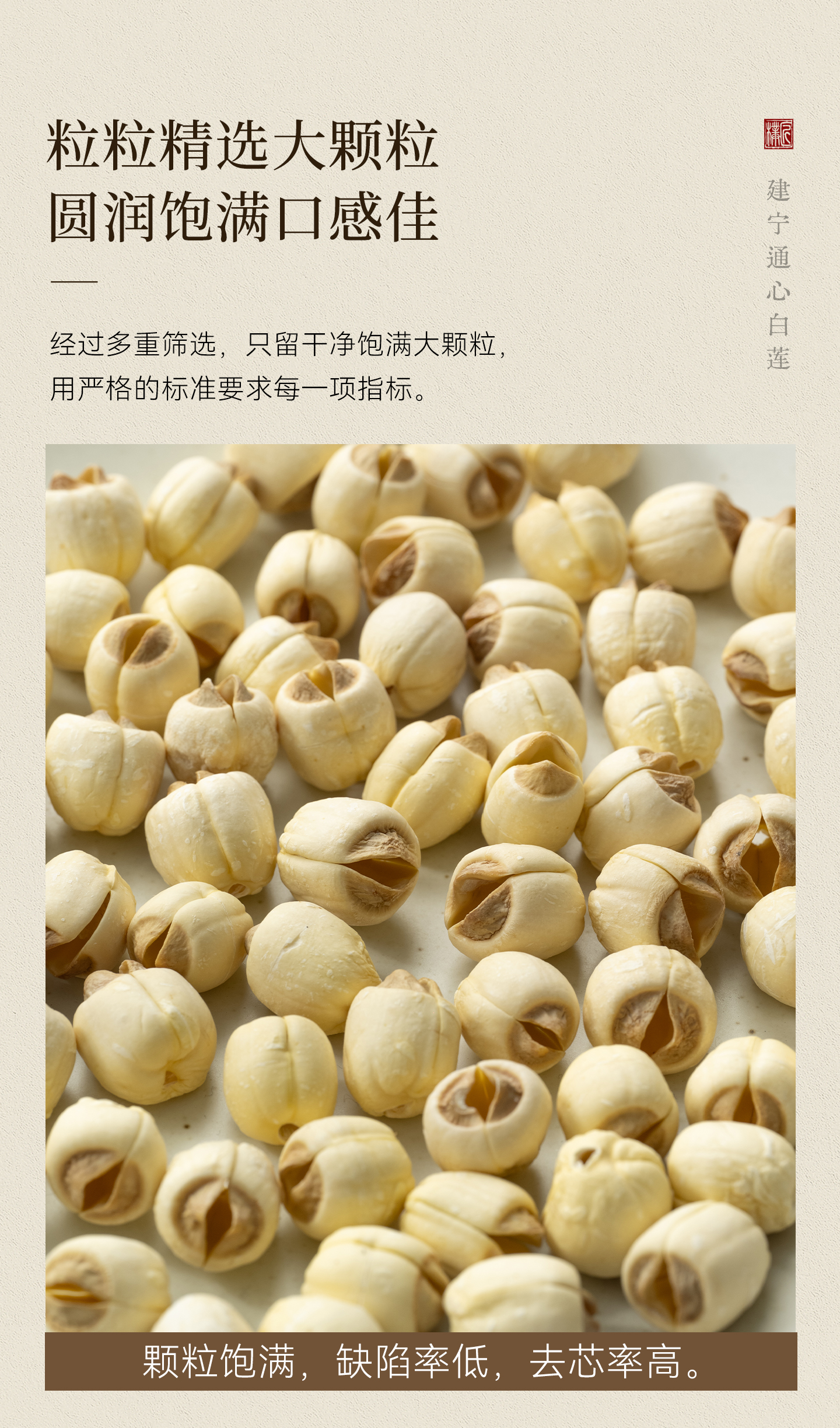 璞匠通心白莲子干货去芯莲子官方旗舰店通芯无芯莲米搭百合银耳羹