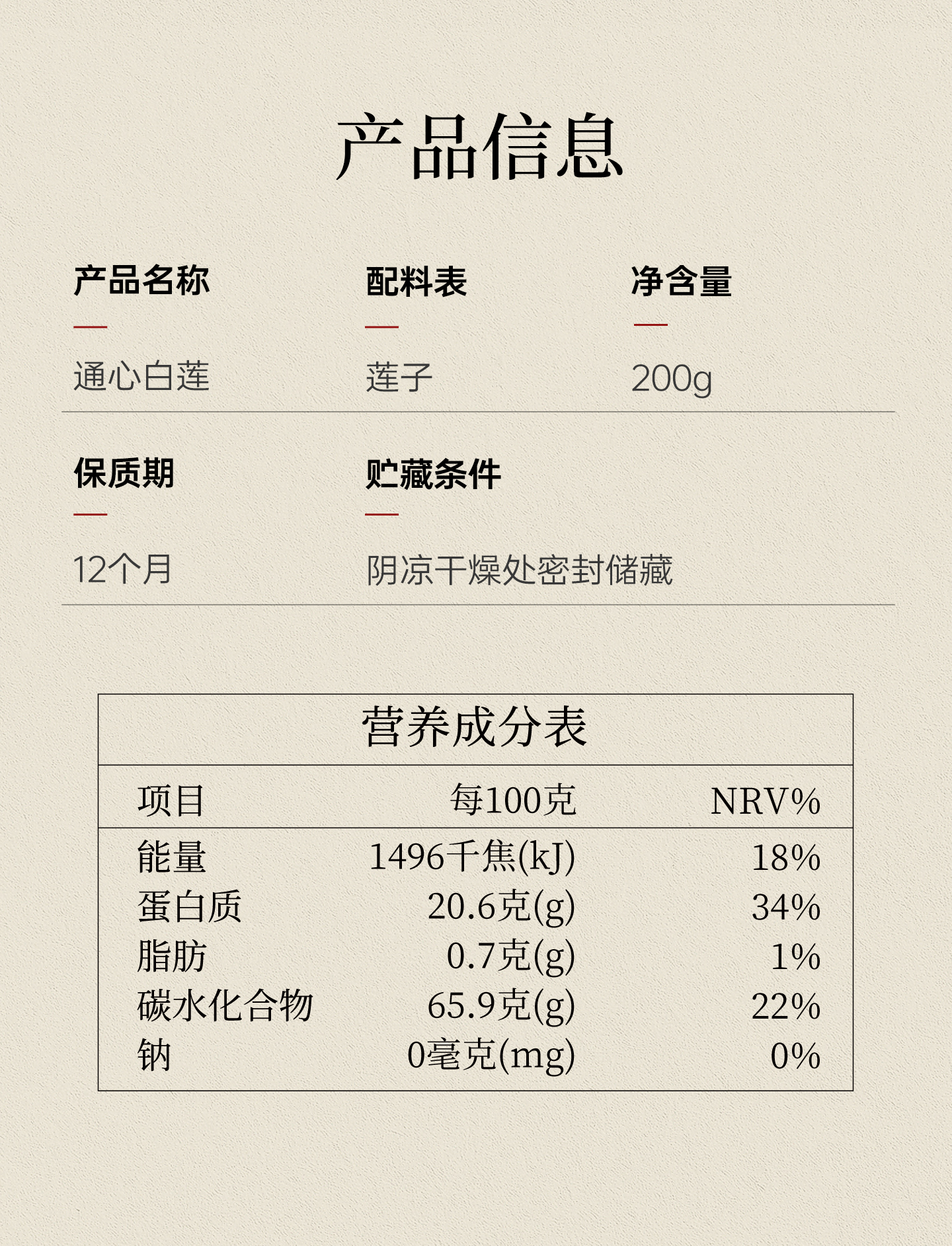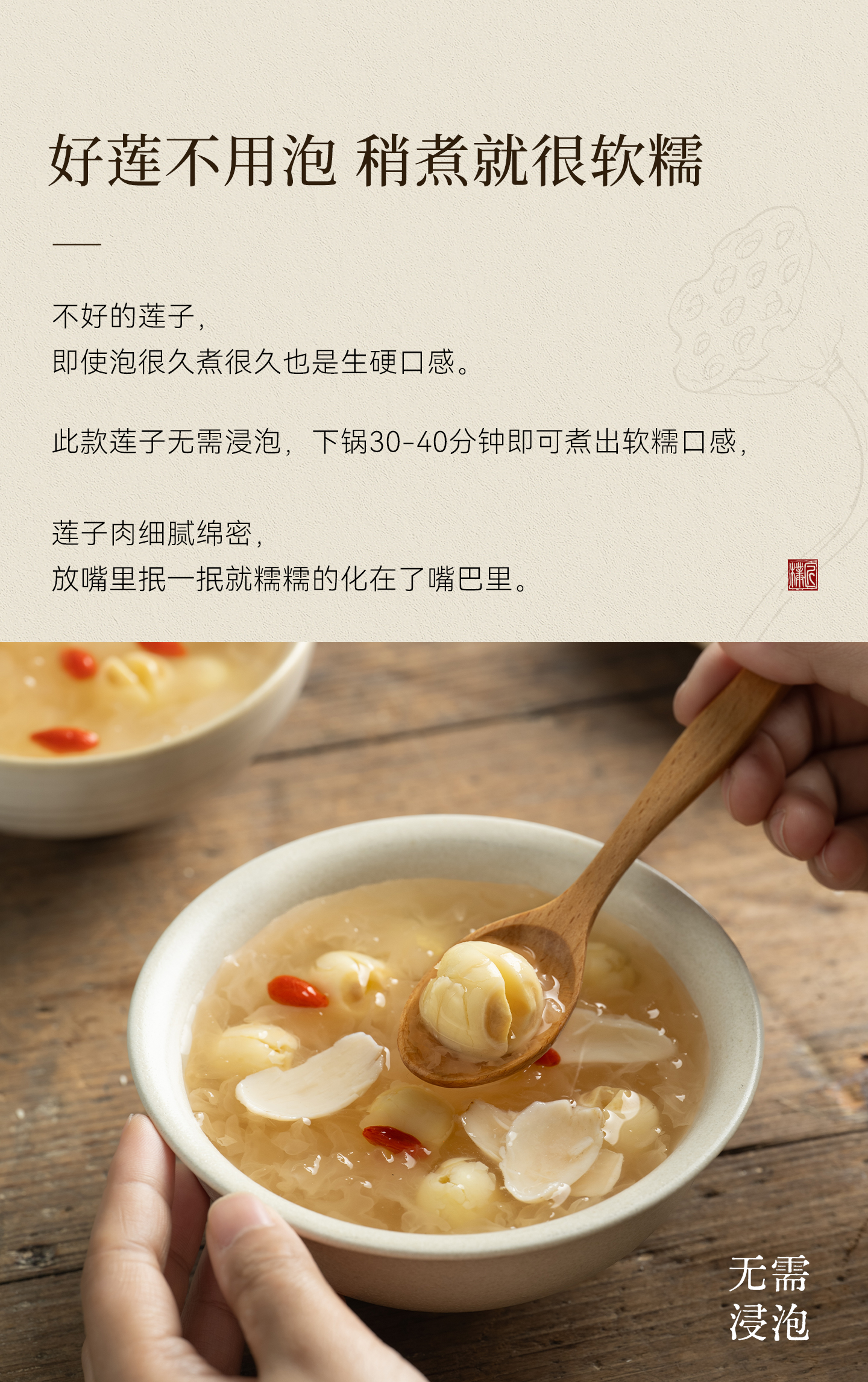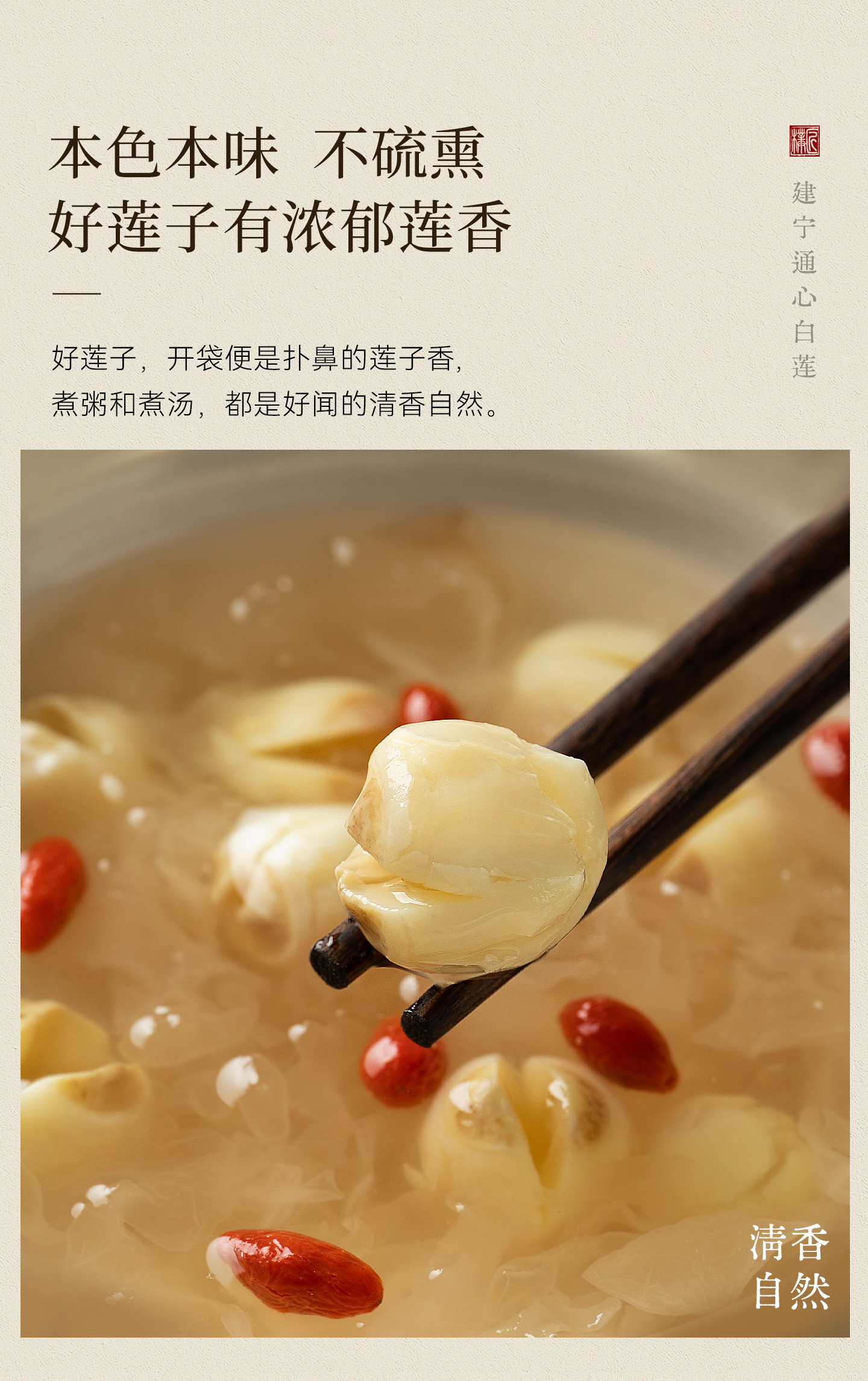 璞匠通心白莲子干货去芯莲子官方旗舰店通芯无芯莲米搭百合银耳羹