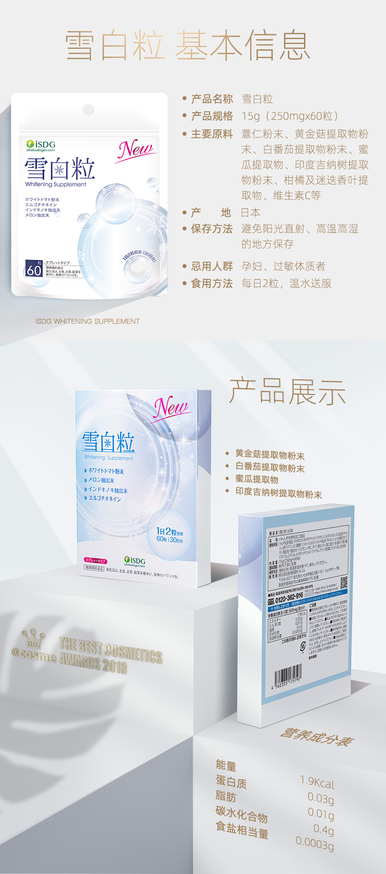 【沈梦辰同款 我是大美人同款套餐】ISDG 日本进口雪白粒 60粒/盒 2盒装