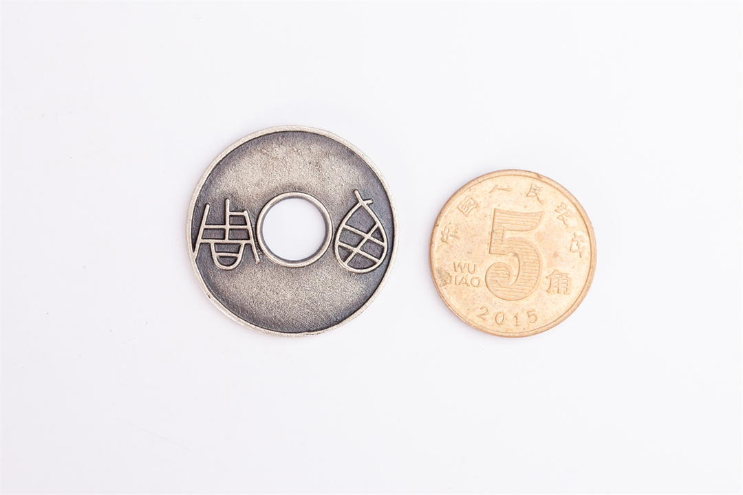 尺寸:钱币直径约25.5毫米,厚约1.5毫米,钱币孔径约7.4毫米,重约4.5克(手工作品有少许误差)。