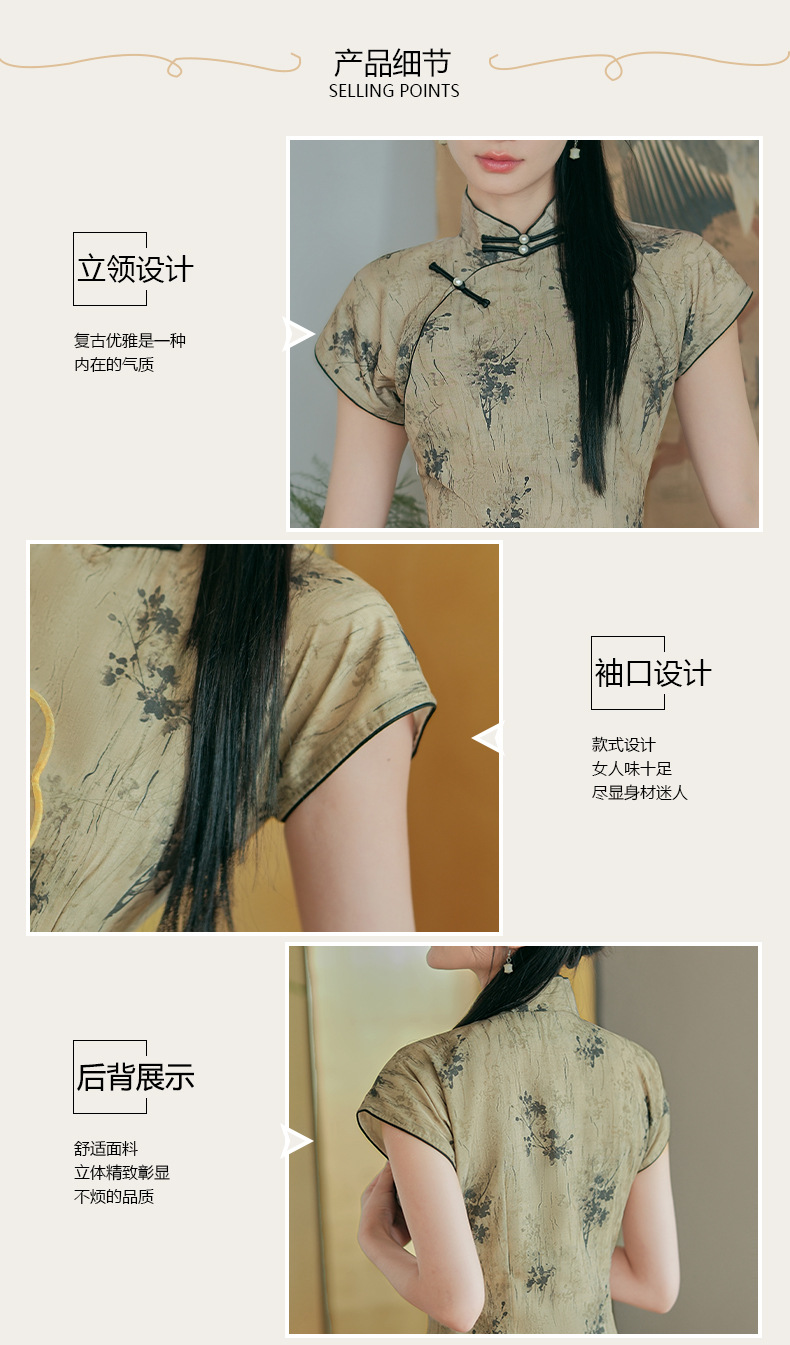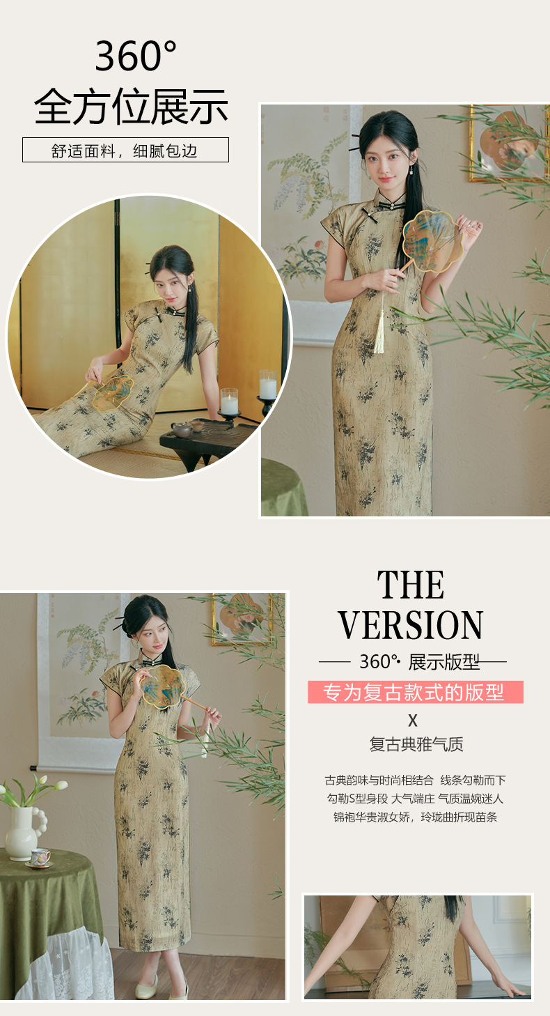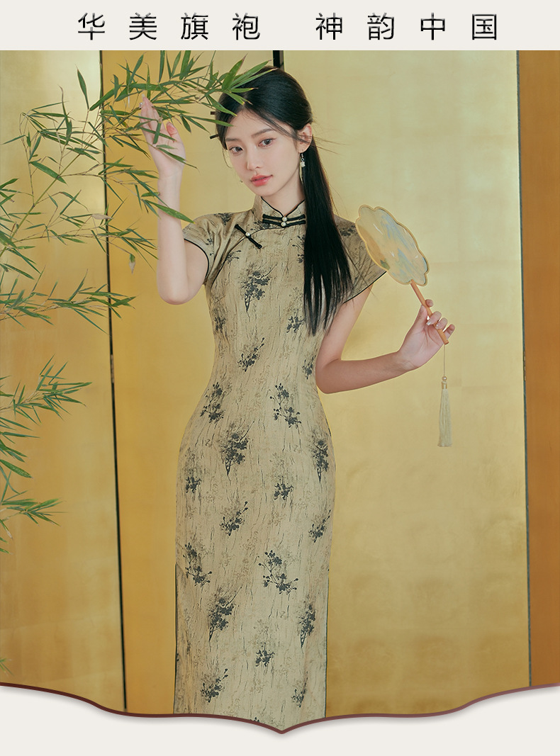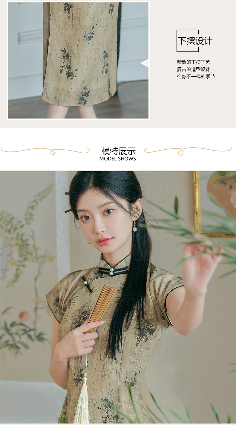 日常文艺,春夏新款仿天丝新中式旗袍古典风气质旗袍裙HYM-23539