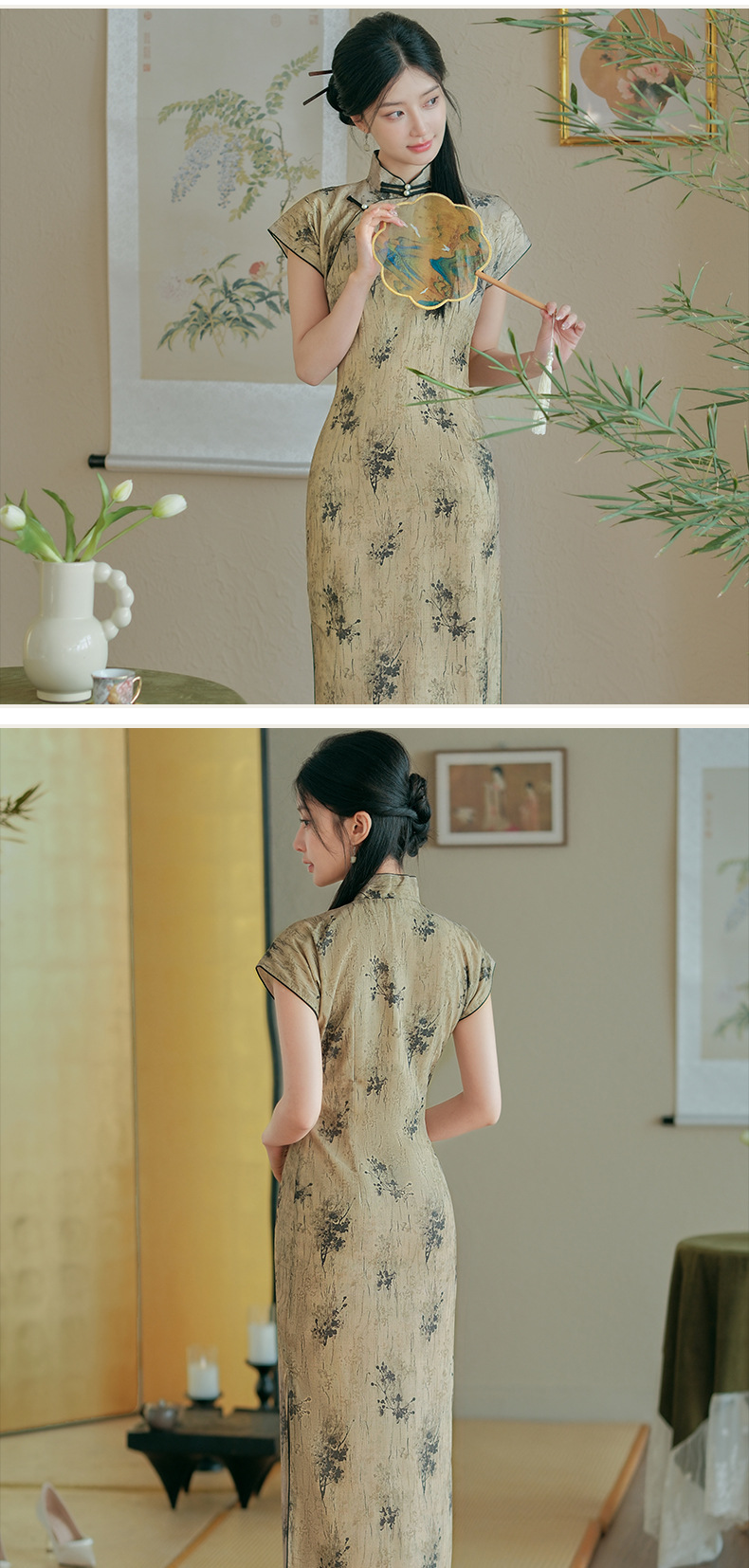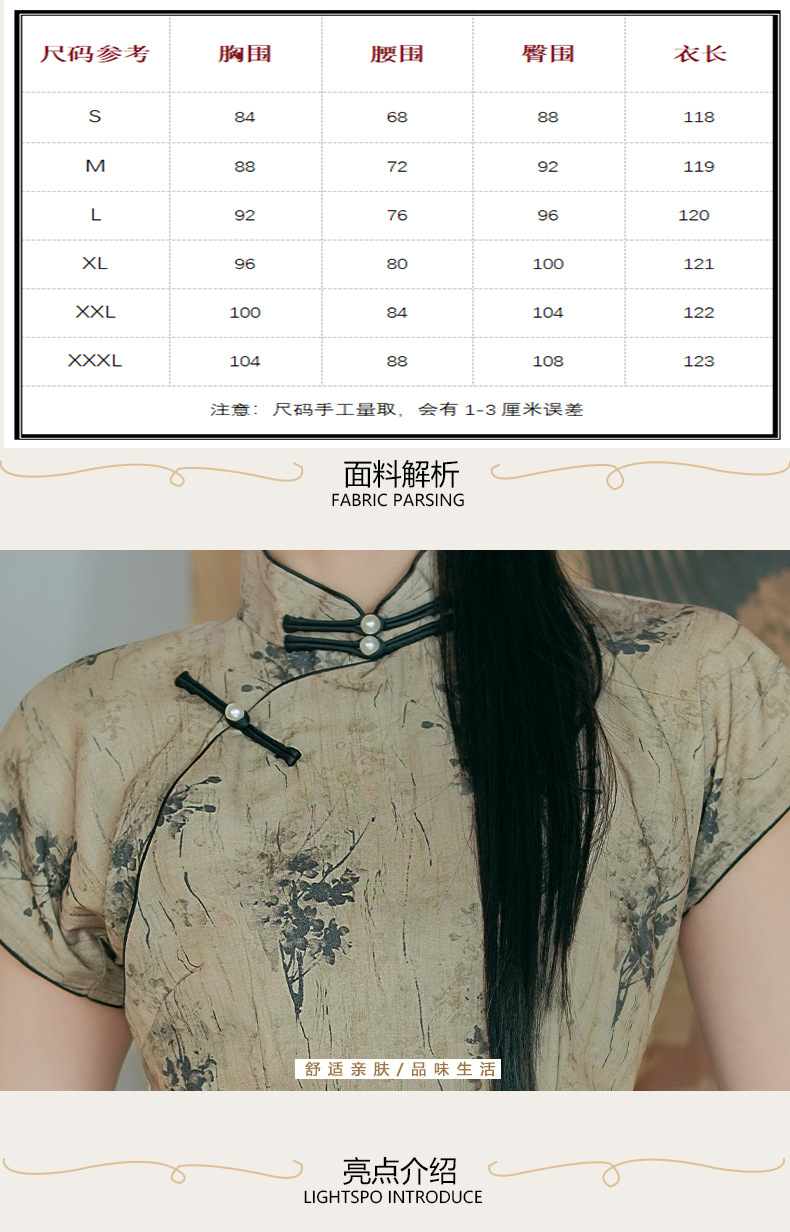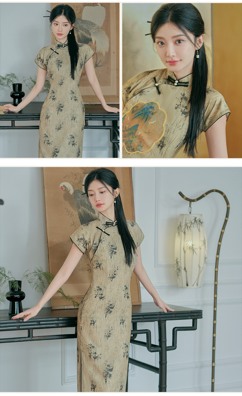 日常文艺,春夏新款仿天丝新中式旗袍古典风气质旗袍裙HYM-23539