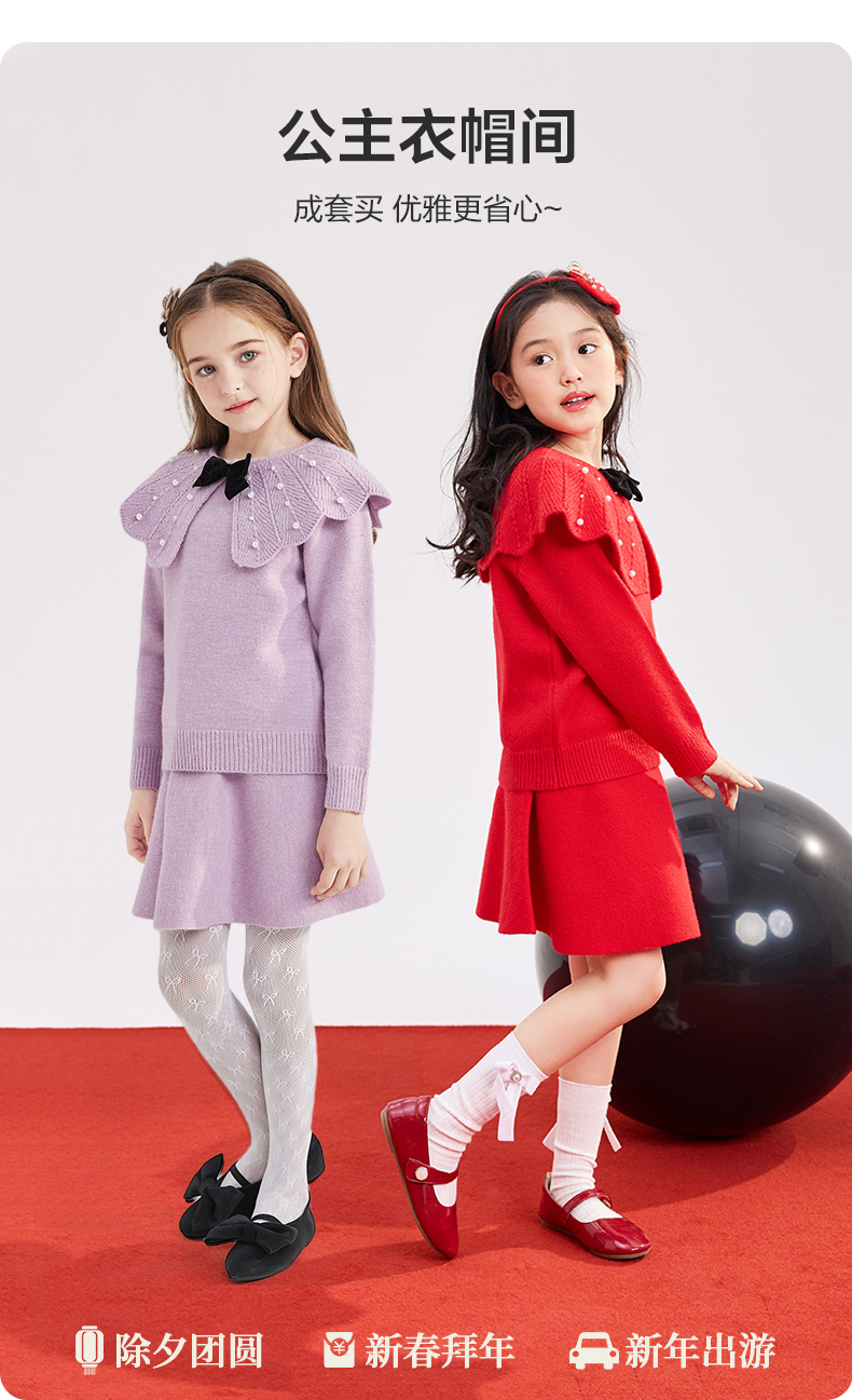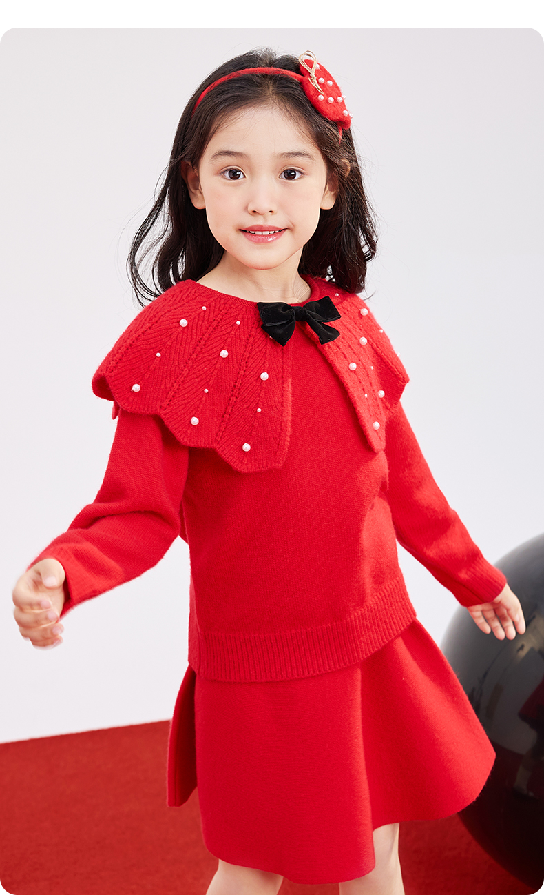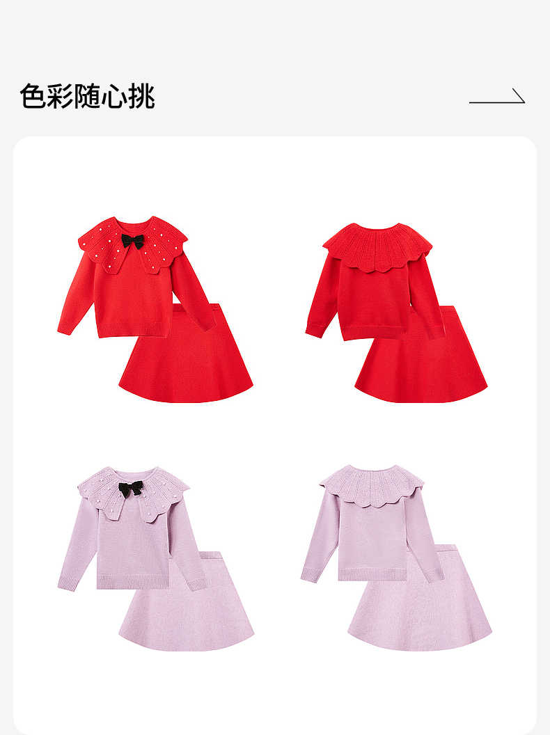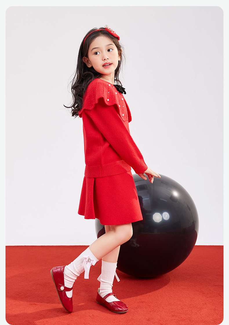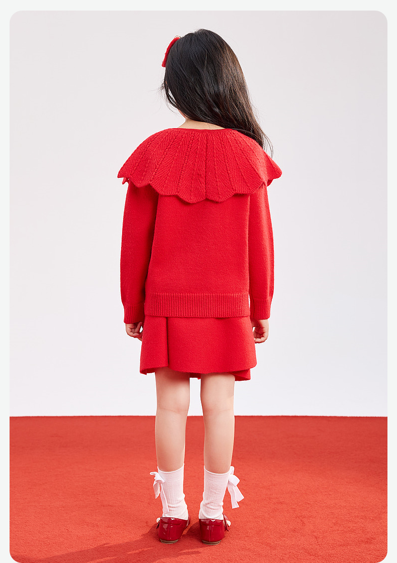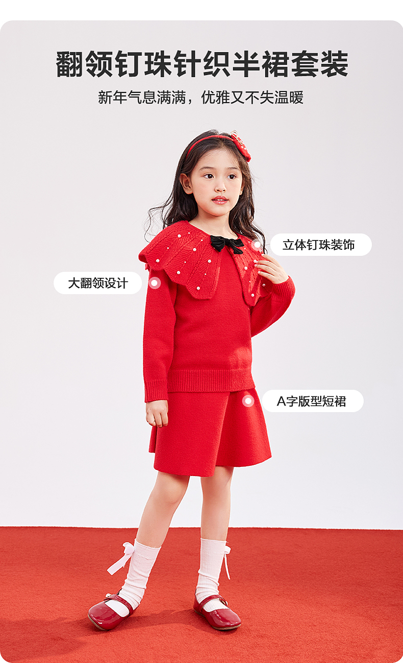 笛莎童装女童套装2023新款翻领针织半裙套装