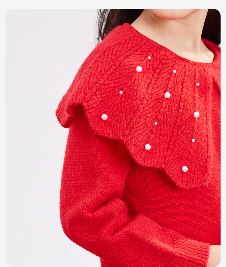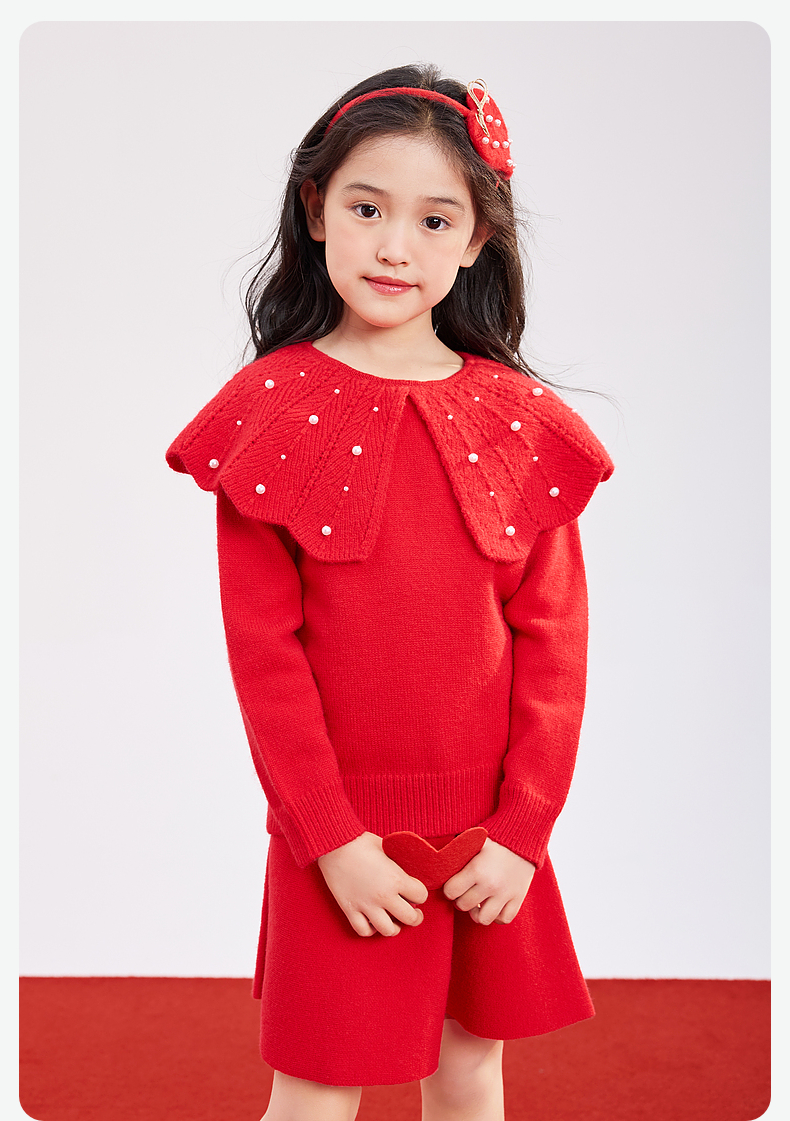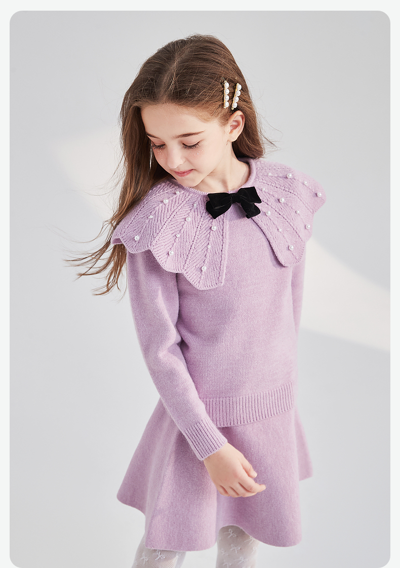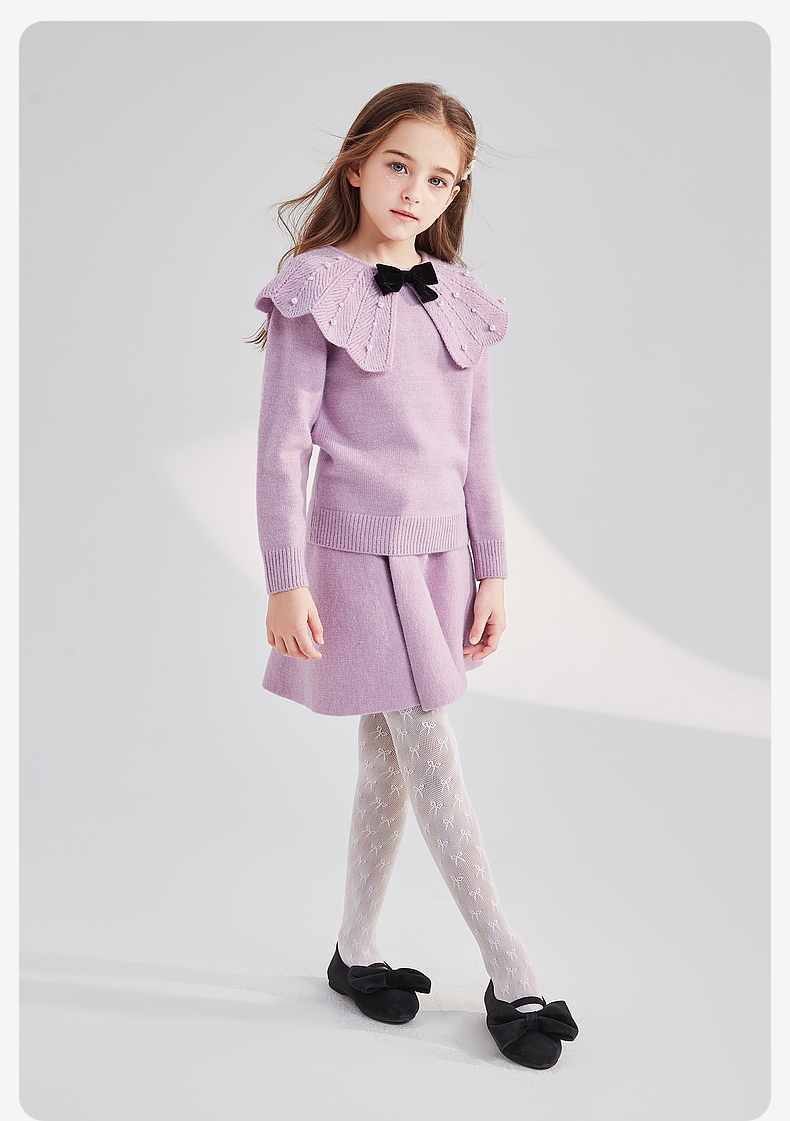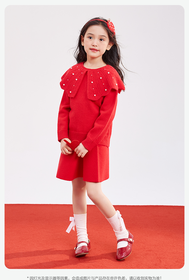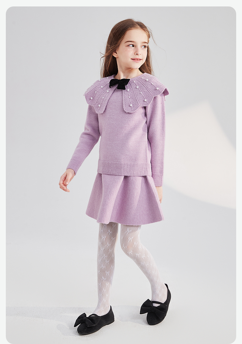 笛莎童装女童套装2023新款翻领针织半裙套装
