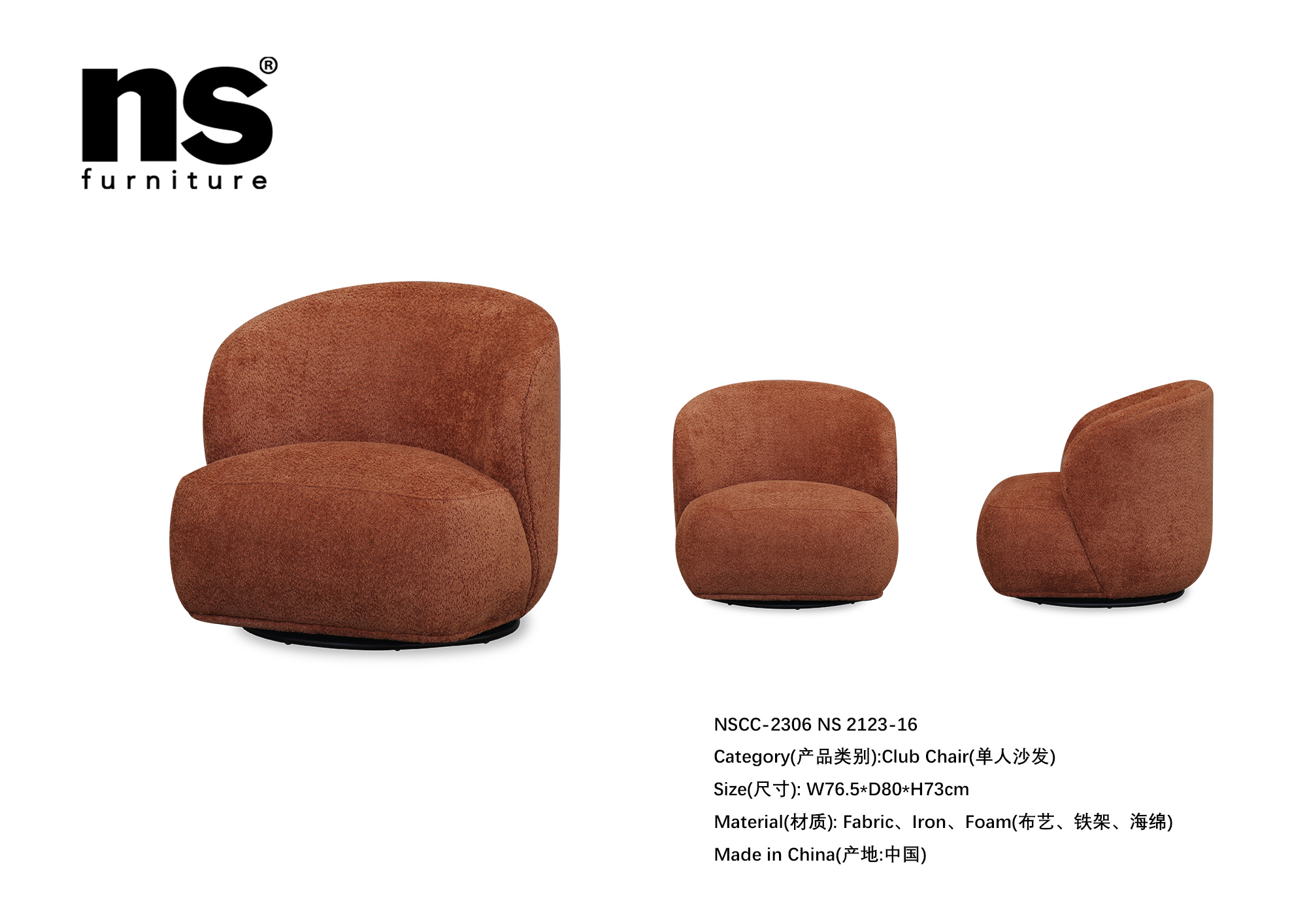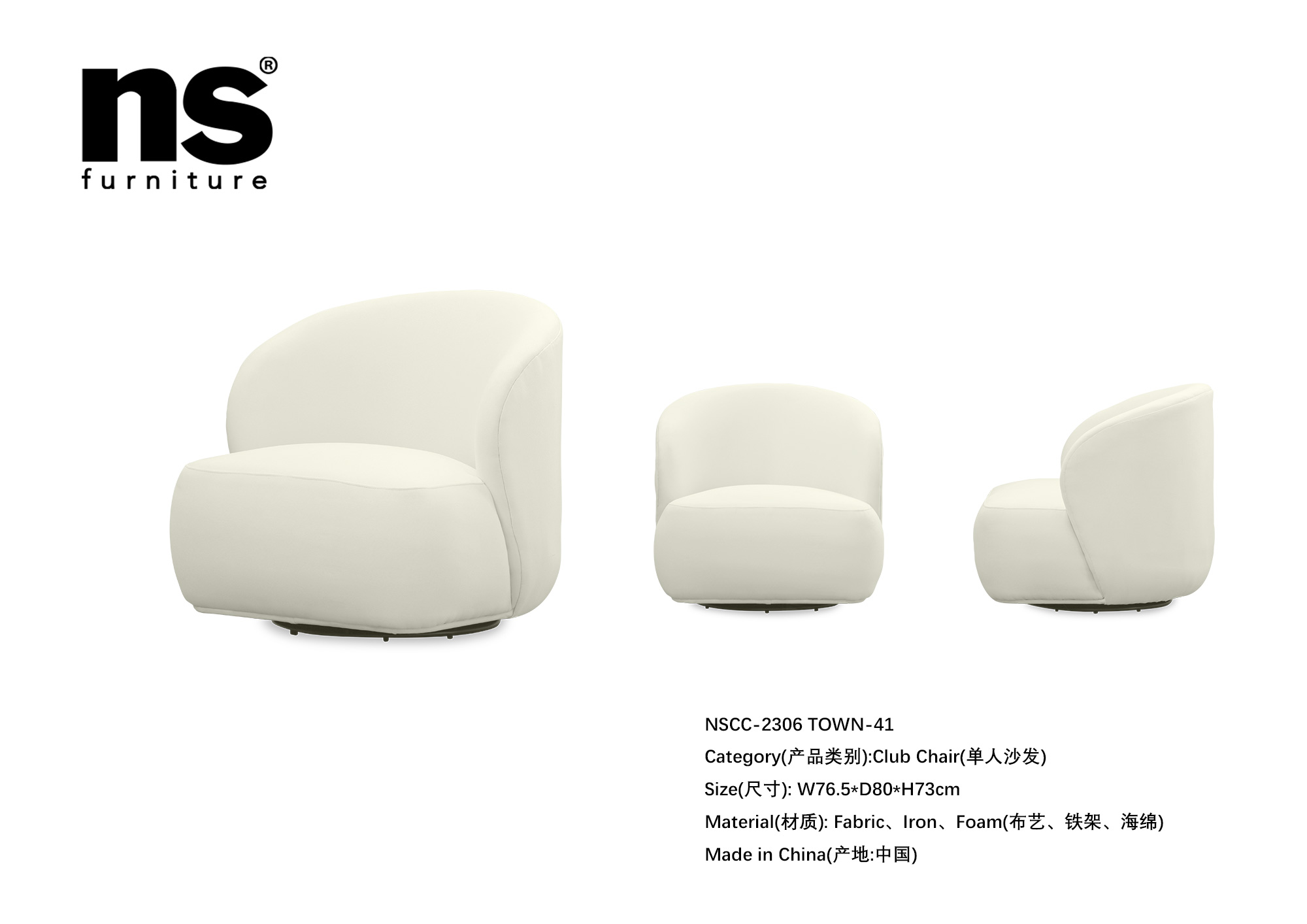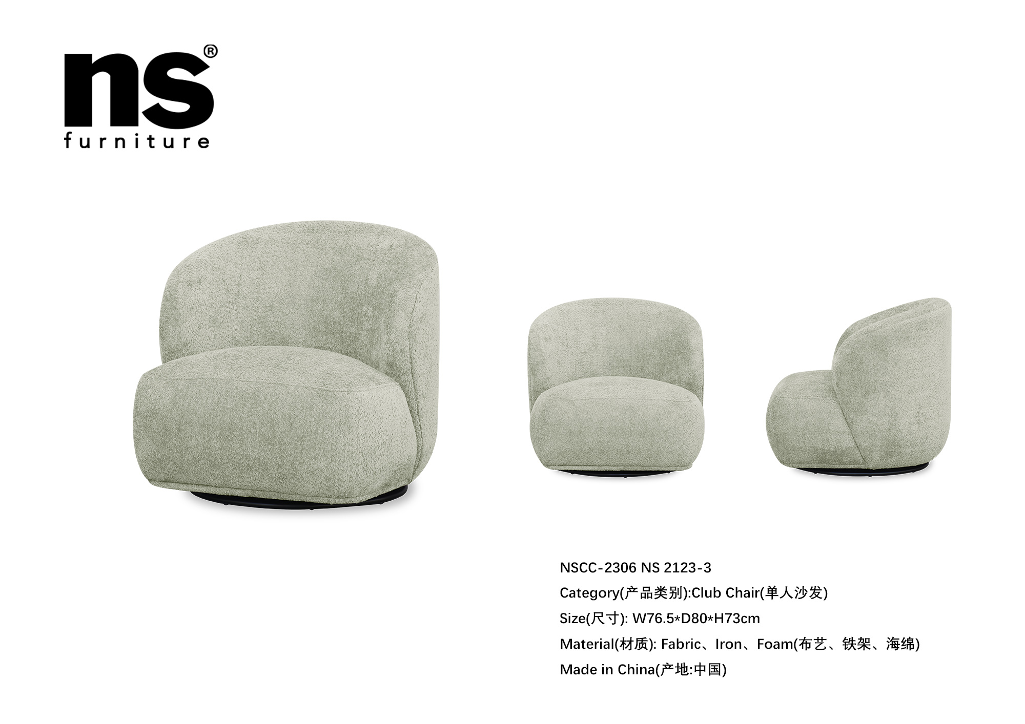NS家居nsfurniture软包布艺旋转单人沙发NSCC-2306
