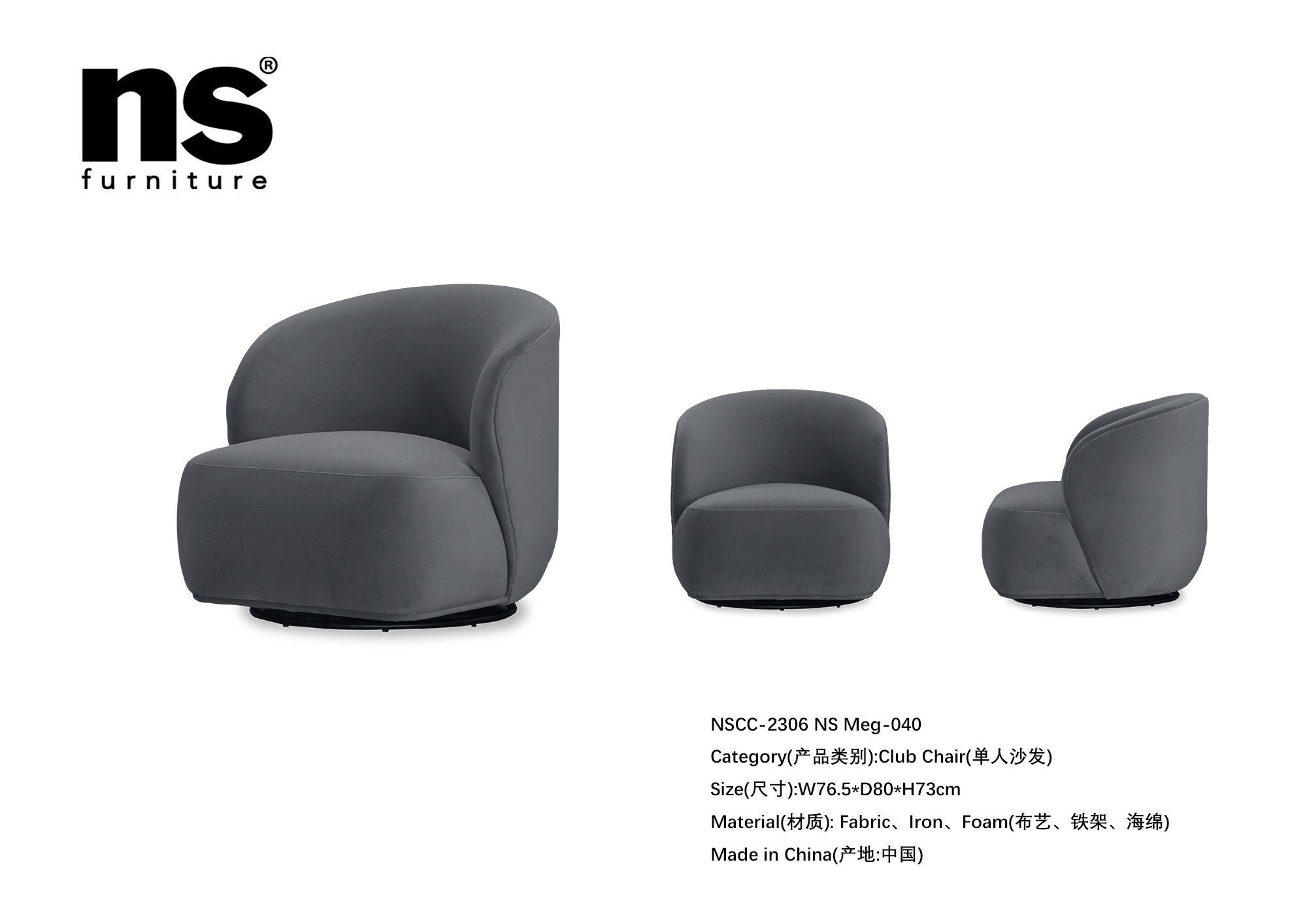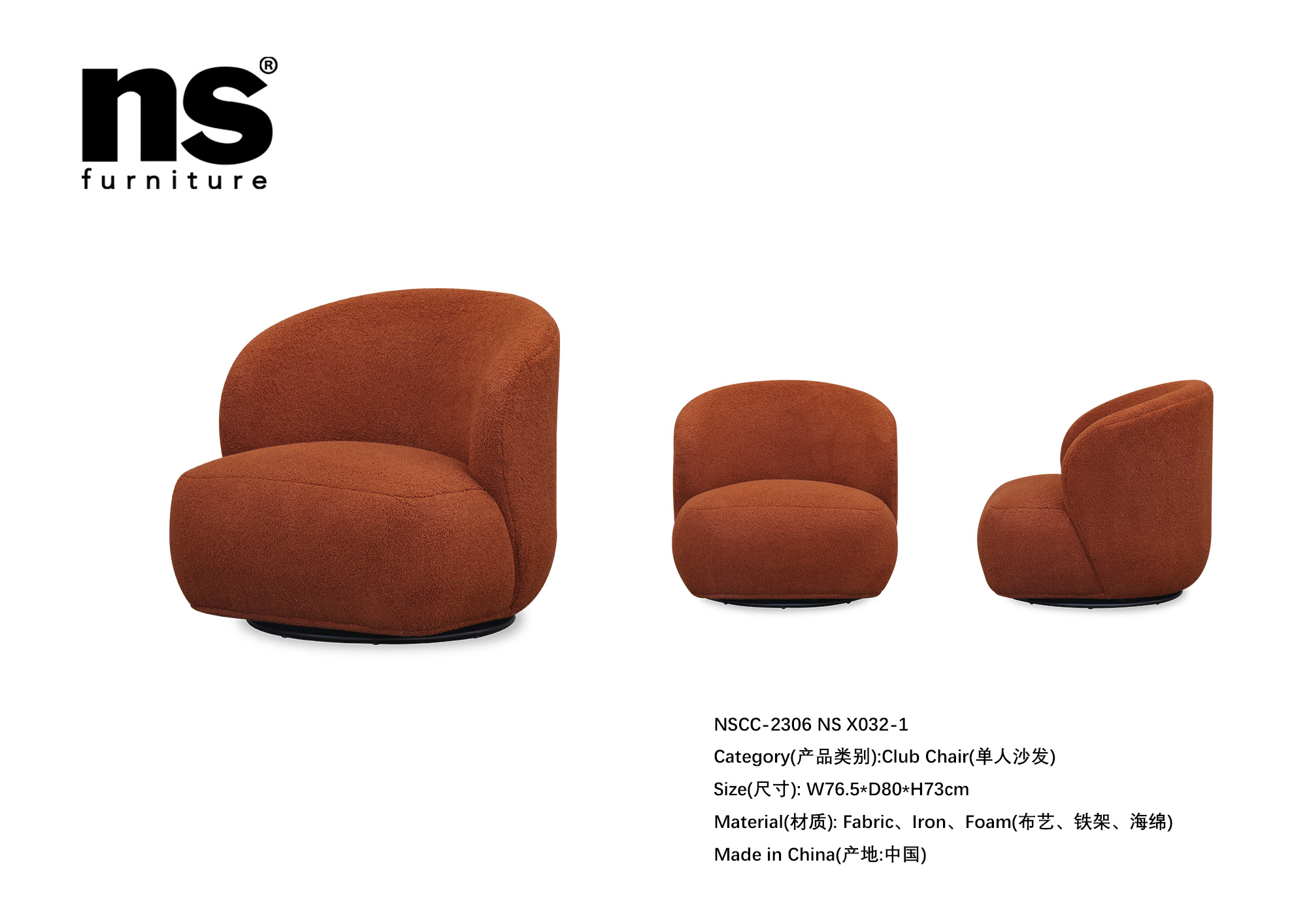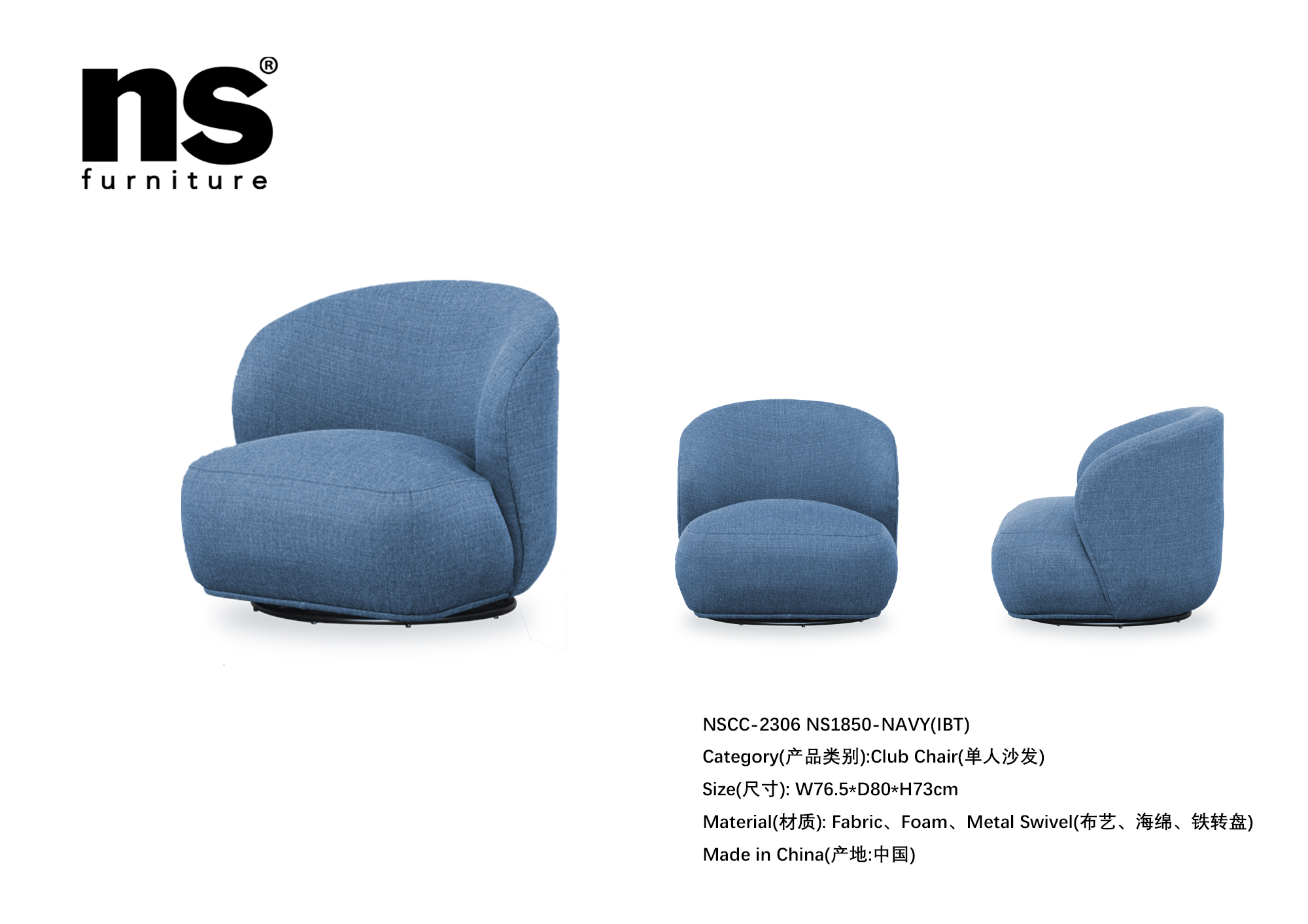NS家居nsfurniture软包布艺旋转单人沙发NSCC-2306