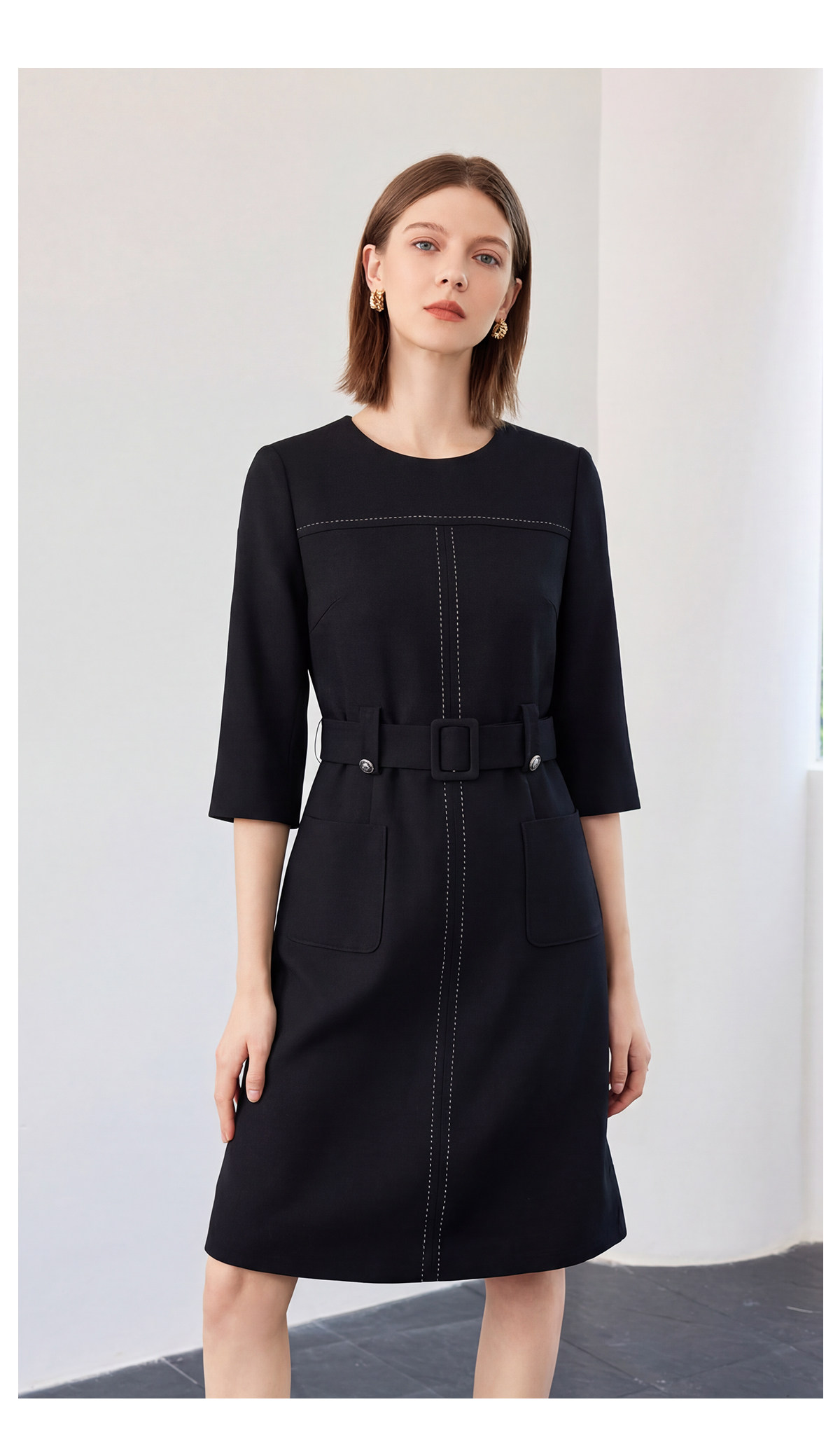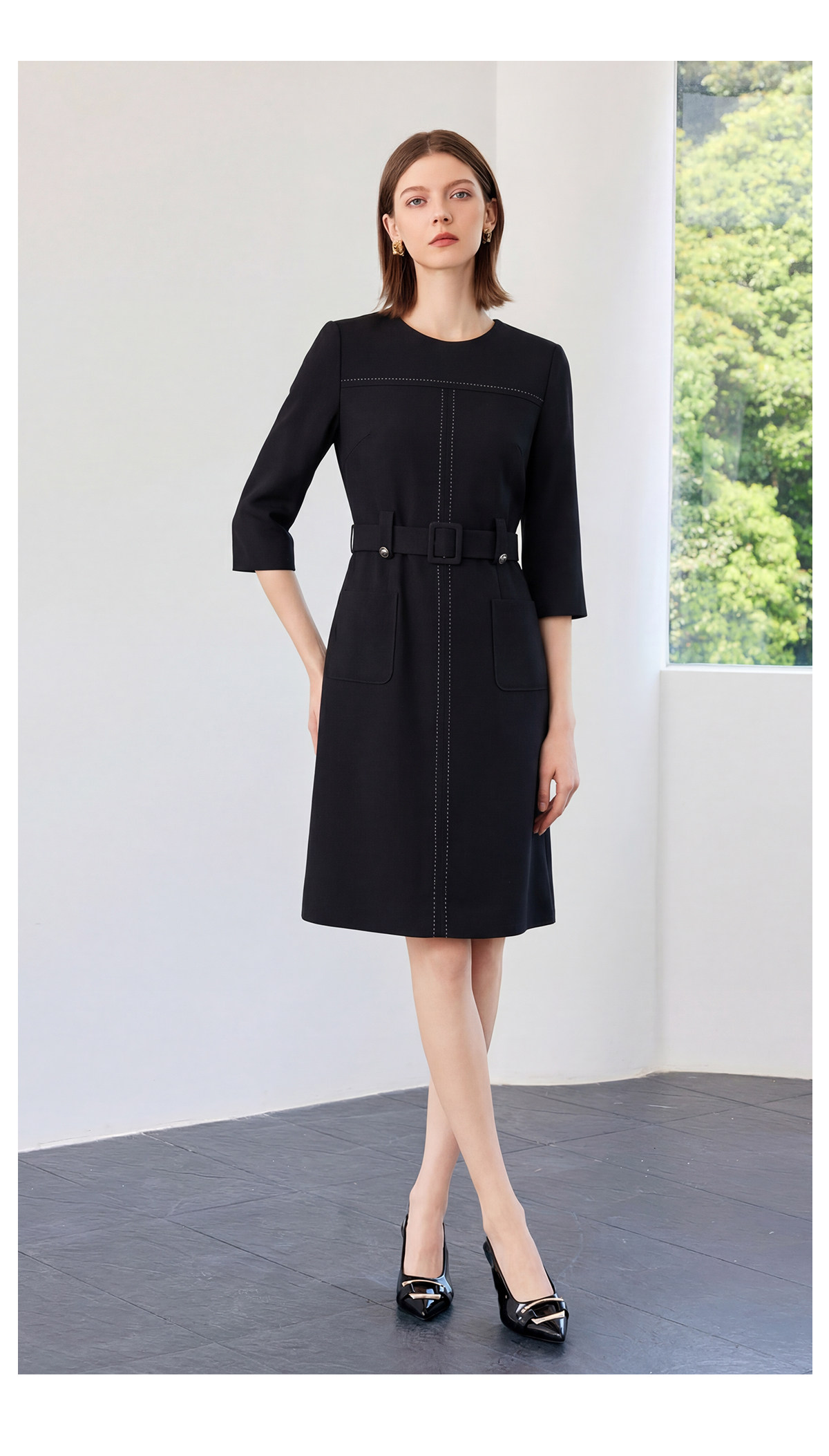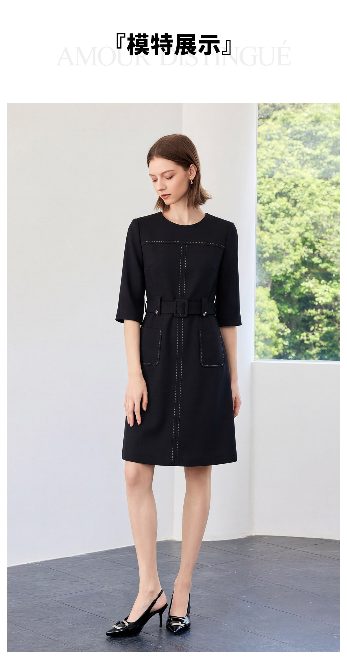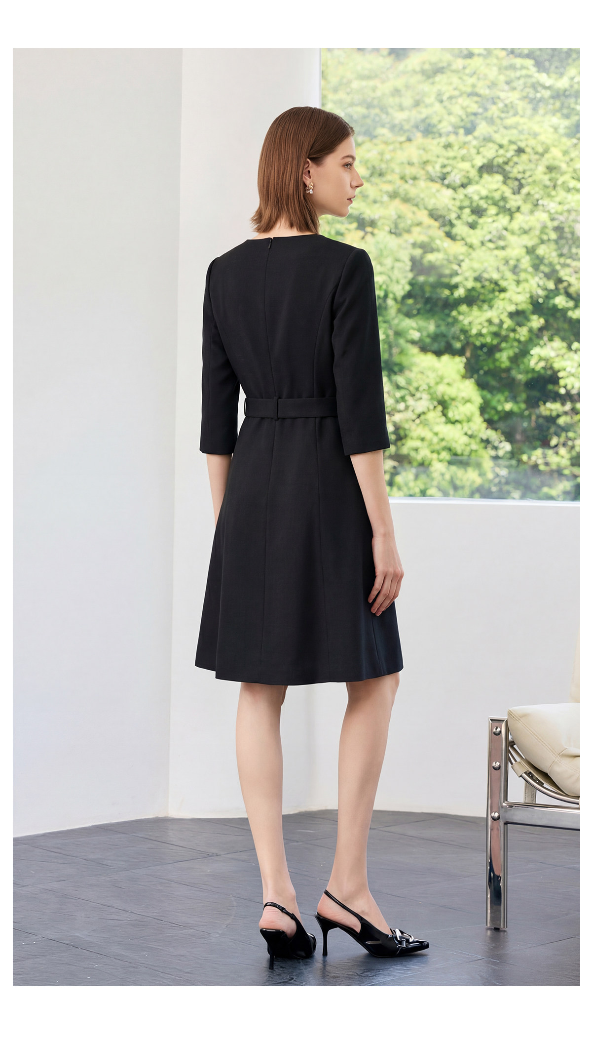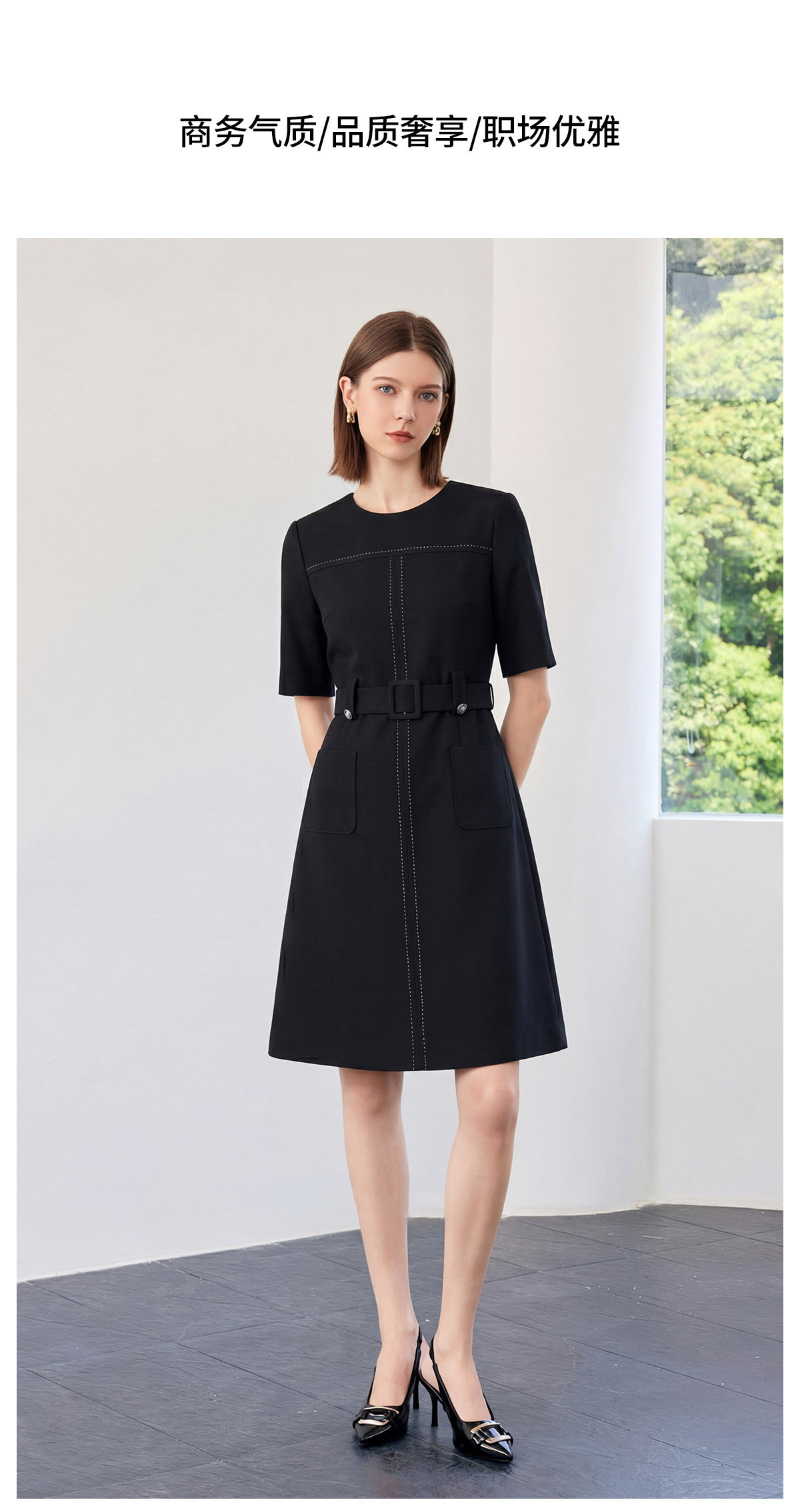 IWY/夏季短袖黑色西装连衣裙女正式场合职业装售楼部接待工作服Q1517