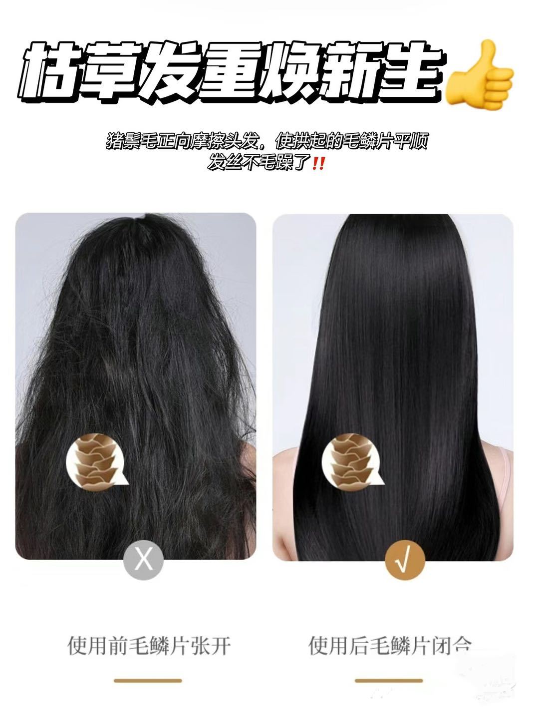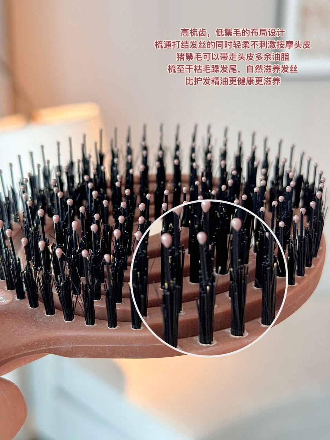 天然猪鬃毛帮助清洁头皮油脂,滋养发丝