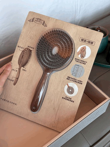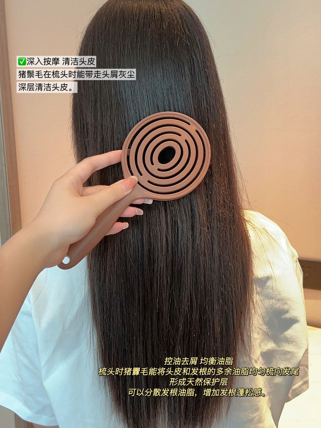 梳头的同时天然猪鬃毛把头发毛囊中的油脂梳至发尾