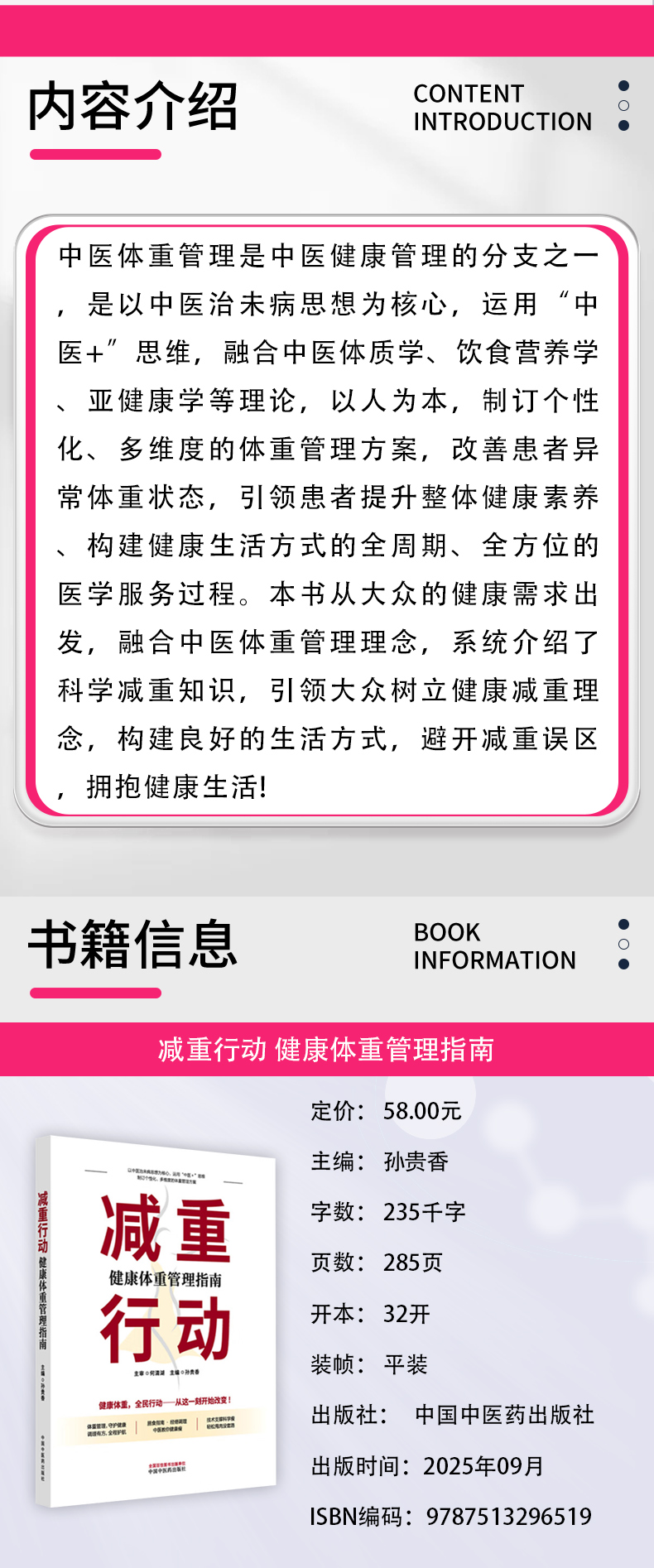 减重行动:健康体重管理指南 孙贵香 主编 何清湖 主审 系统介绍了科学减重知识 避开减重误区 拥抱健康生活 中国中医药出版社