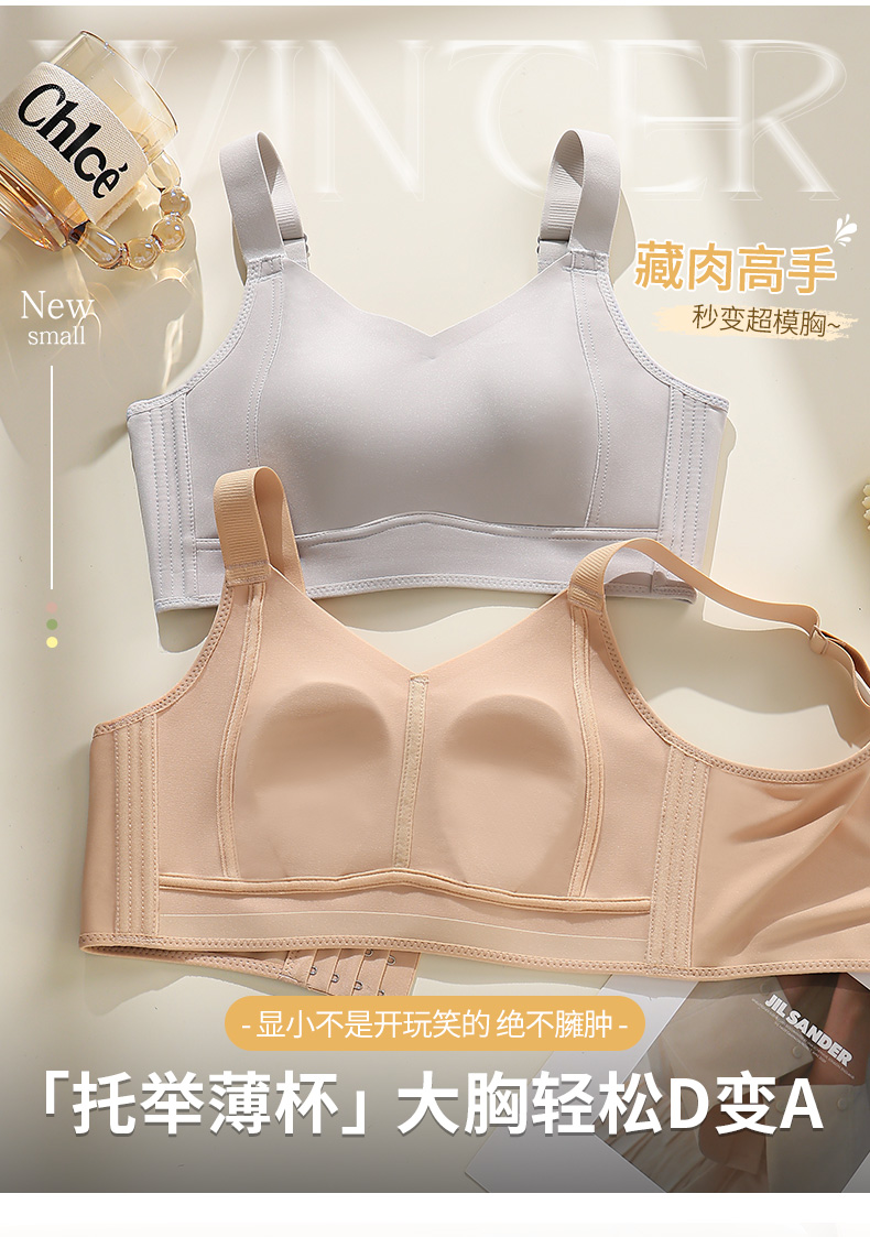 分区塑形 双倍提拉【梦惠妮 纸片人塑形内衣】第二件仅30元 兔耳杯 显瘦显身材 轻薄无痕 四排四扣 加高侧翼比 大容量包裹 收副乳内衣 粉底液内衣 特调肤色 #M663