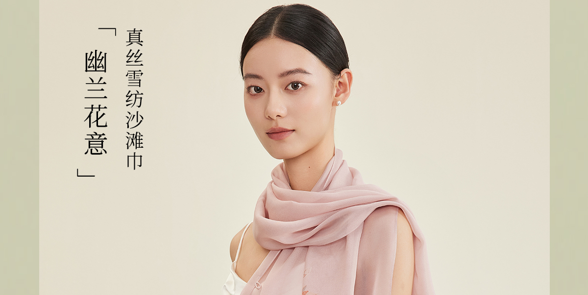 万事利“幽兰花意”双面印花长巾