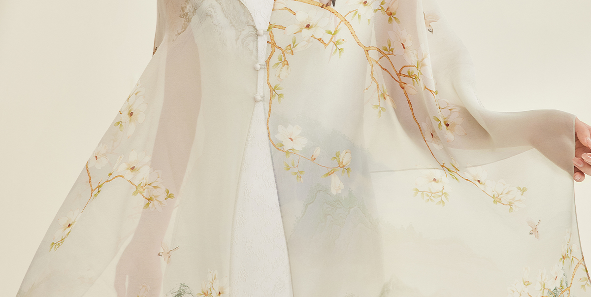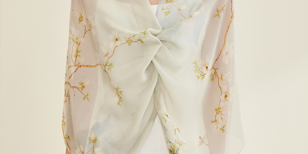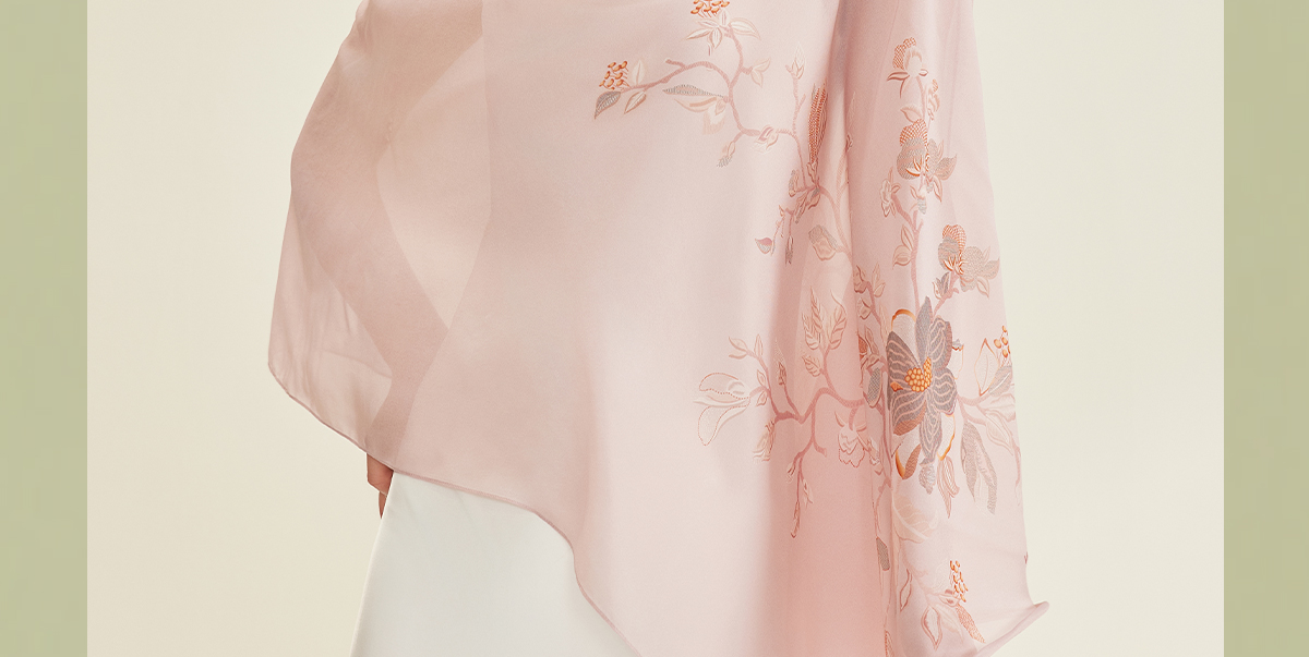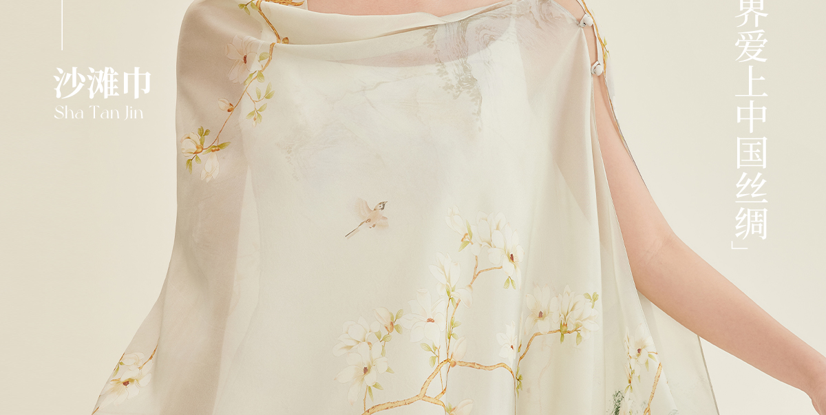 万事利“四时景”88厘米双面印花真丝大方巾