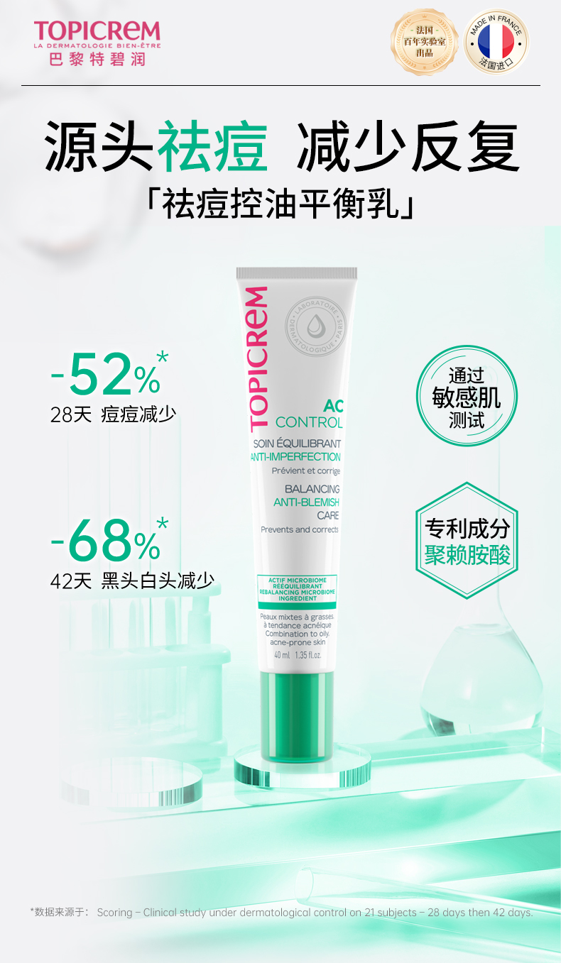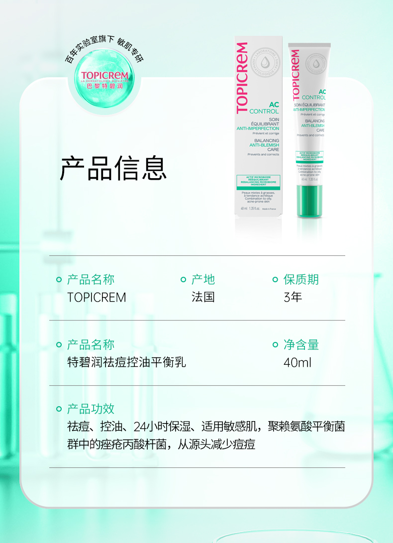 TOPICREM 特碧润祛痘控油平衡乳40ml 有效祛痘 淡化痘印