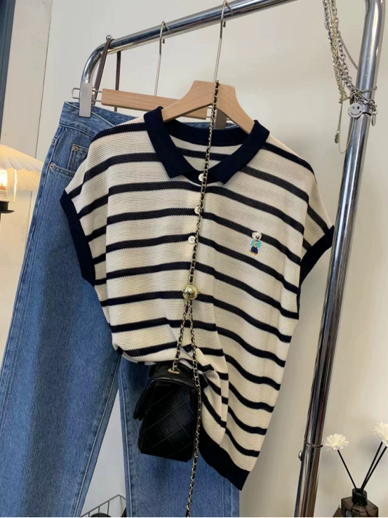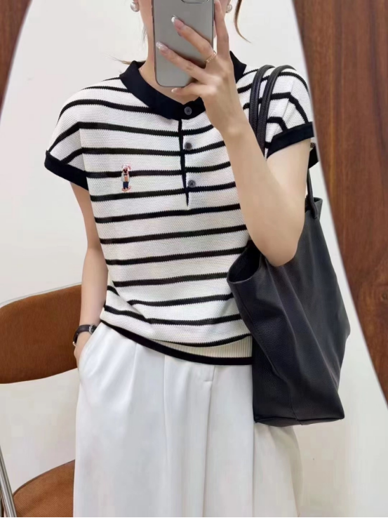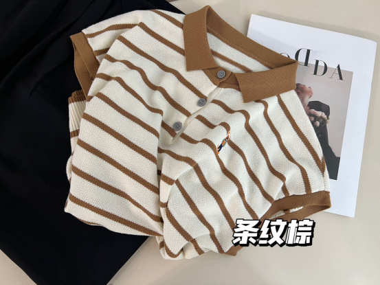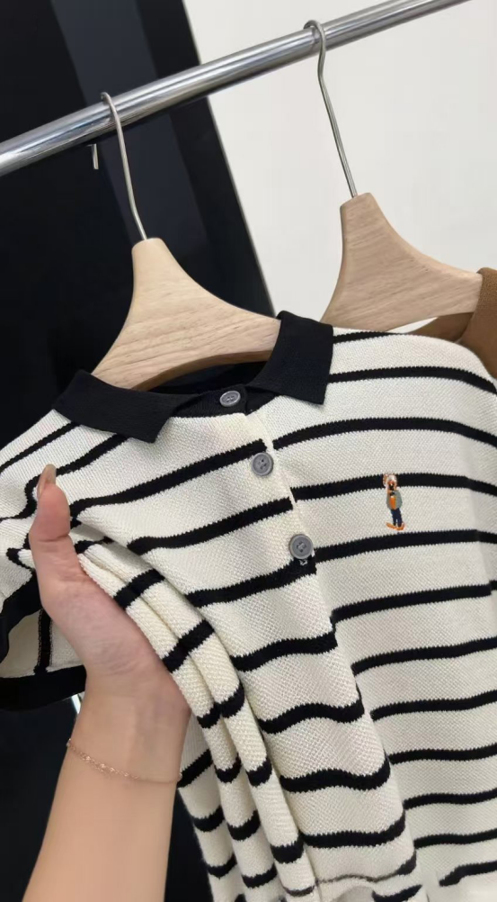 💥夏日新潮流| 【MOMOTIABIN翻领撞色条纹刺绣T恤YMC105】美翻天💖重磅来袭‼条纹说是百读不厌的经典单品了