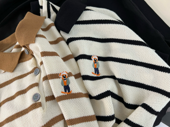 MOMOTIABIN翻领撞色条纹刺绣T恤YMC105