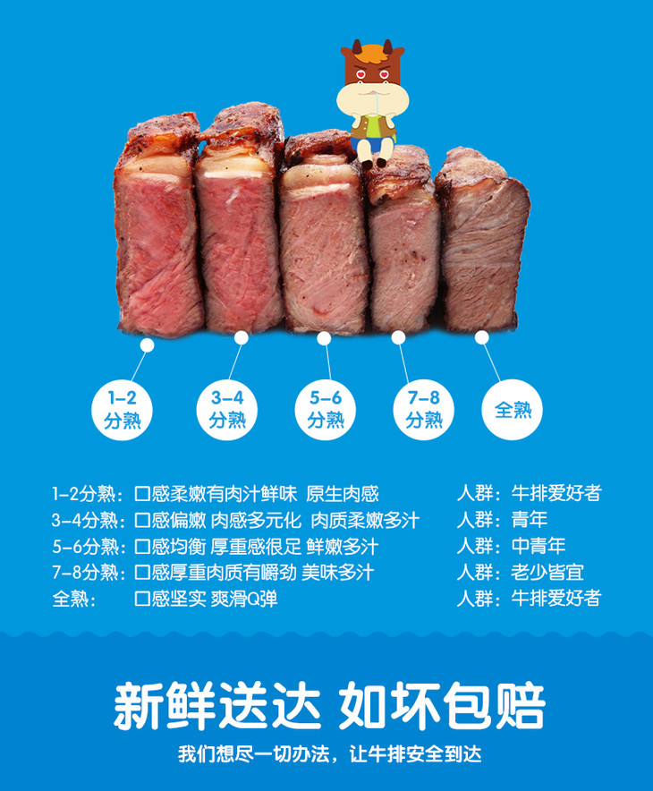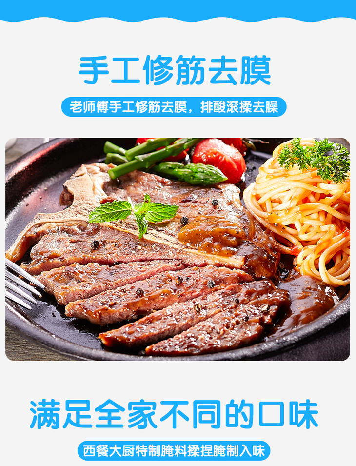 一般位于牛的上腰部,是一块由外脊肉、脊骨和里脊肉等构成的大块牛排。形状同T骨牛排,一般厚2一3厘米左右,重300一450克左右。小点的200克,厚度1.7厘米。其加工方法是:首先去掉包装袋和多余的脂肪,脂肪要保留一点能增加香气