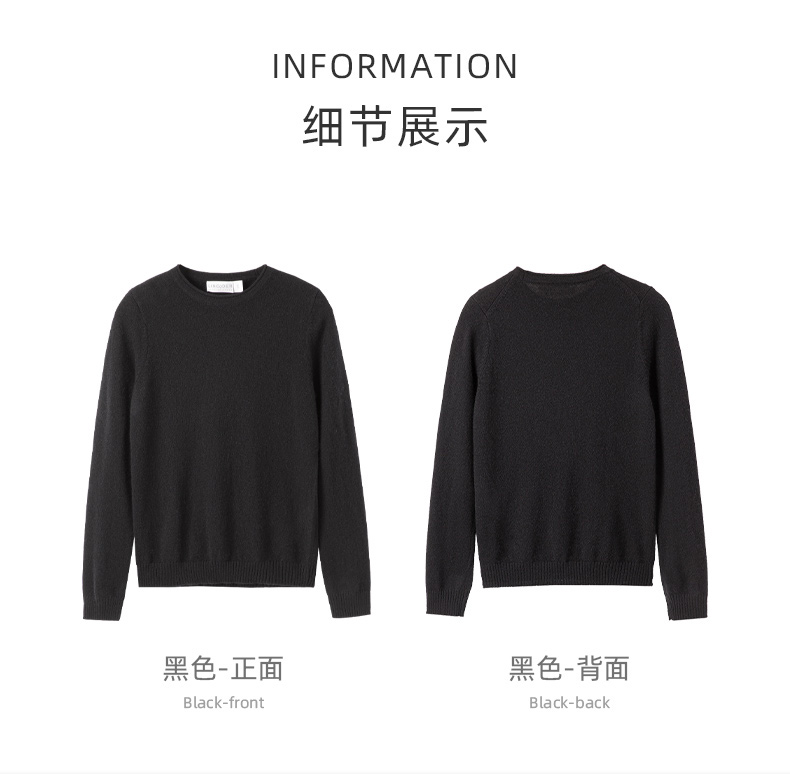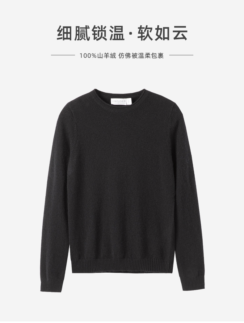 羚荌渼百搭时尚基础打底衫卷边圆领羊绒衫女针织毛衣