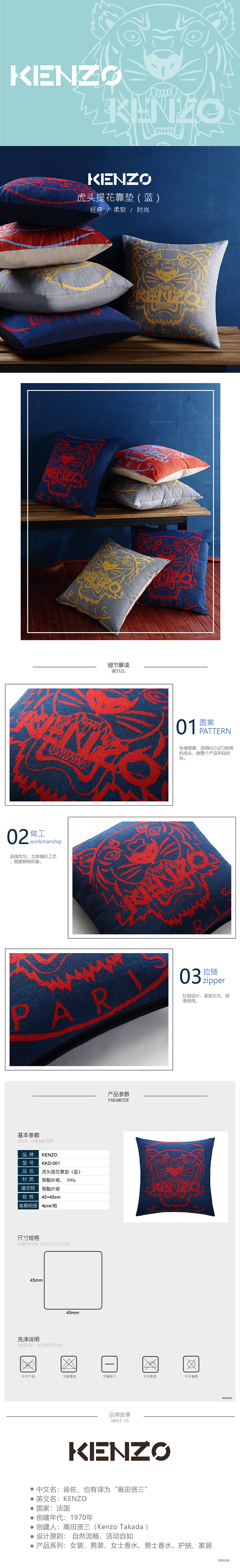 KENZO 虎头提花靠垫蓝 KKD-001