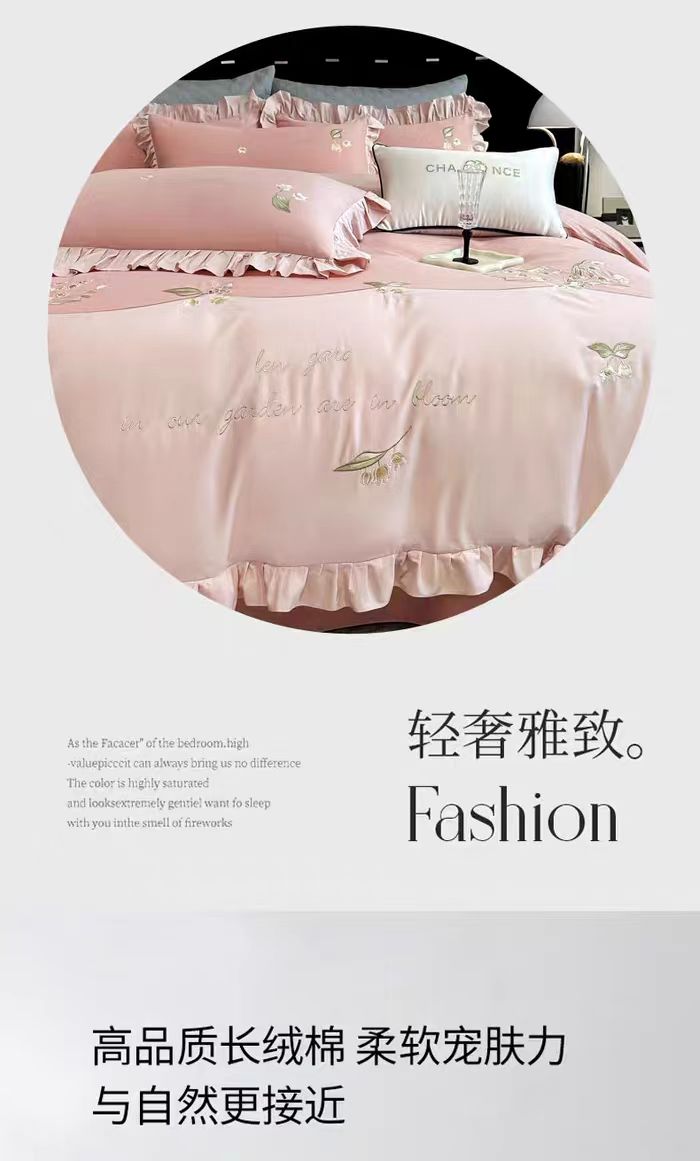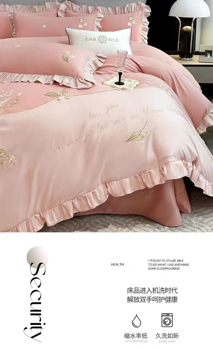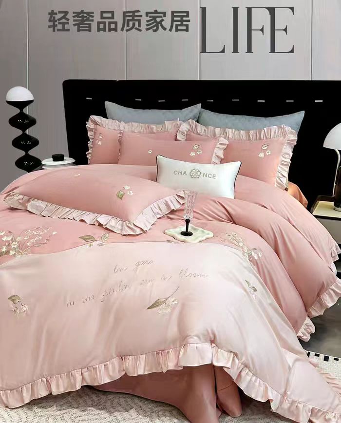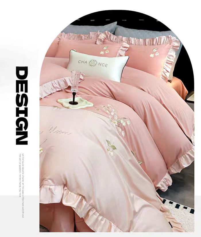 韩式公主风全棉刺绣花边铃兰花开四件套G117800033