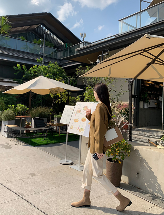 靴筒很包腿,凸显出纤细的脚踝 宽松有度不是紧箍的那种 每次出门前只要简单几步 就能让整个人看起来更加挺拔修长 拍照的时候更是自信满满 怎么拍都是美美滴 瘦长的版型修饰效果一绝 宽胖脚穿也非常显瘦