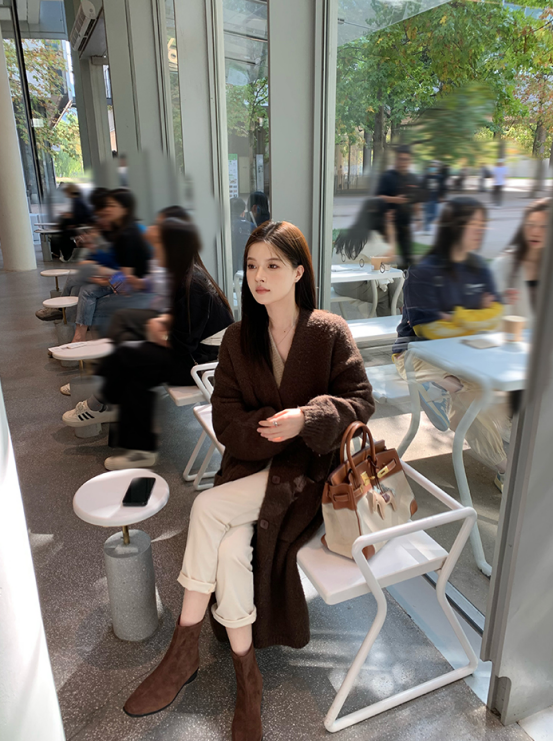 今年毋容置疑 美拉德色系领跑今年整个冬天 不管是靴子,单鞋,裤子,裙子,衣服 被这种色系的东西种草了好多 这款靴子用的是羊綡绒鞋面 就是穿上去皮质软软糯糯的感觉 这种也是穿上去比较耐看型,极简风,洋气,偏韩风 没有驾驭难度的低跟设计通勤很自在,低调有气质