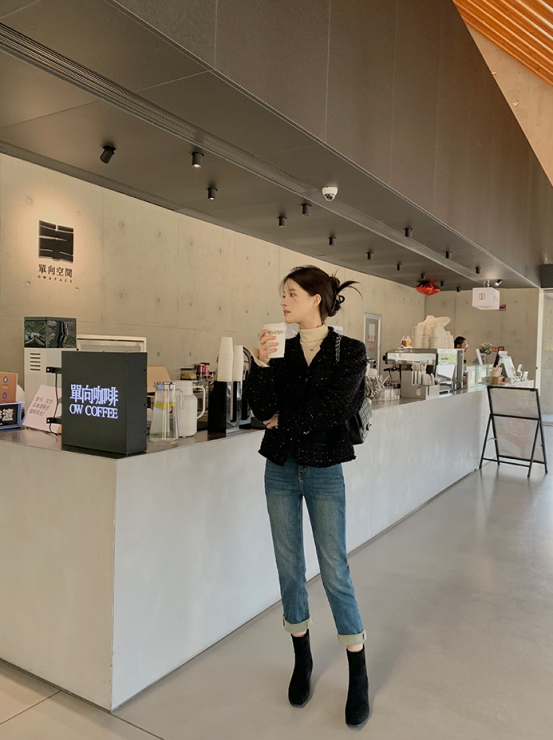 乌木棕就非常贵气优雅啦 配上八九分长的直筒牛仔裤 一整个韩韩复古味儿 整个靴子都很柔软 所以包容性很强,不用担心挤脚 脚感敲在线,适合暴走
