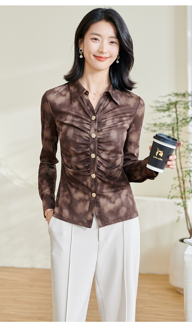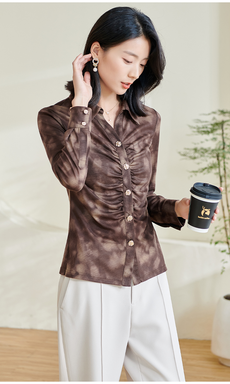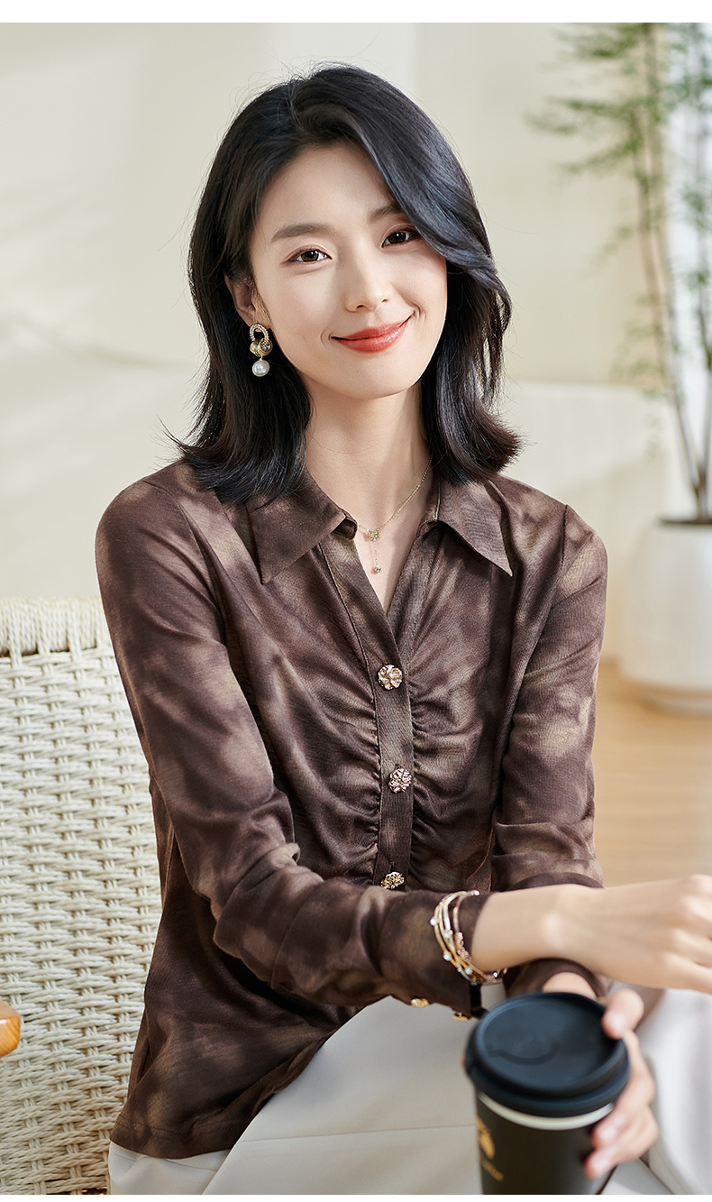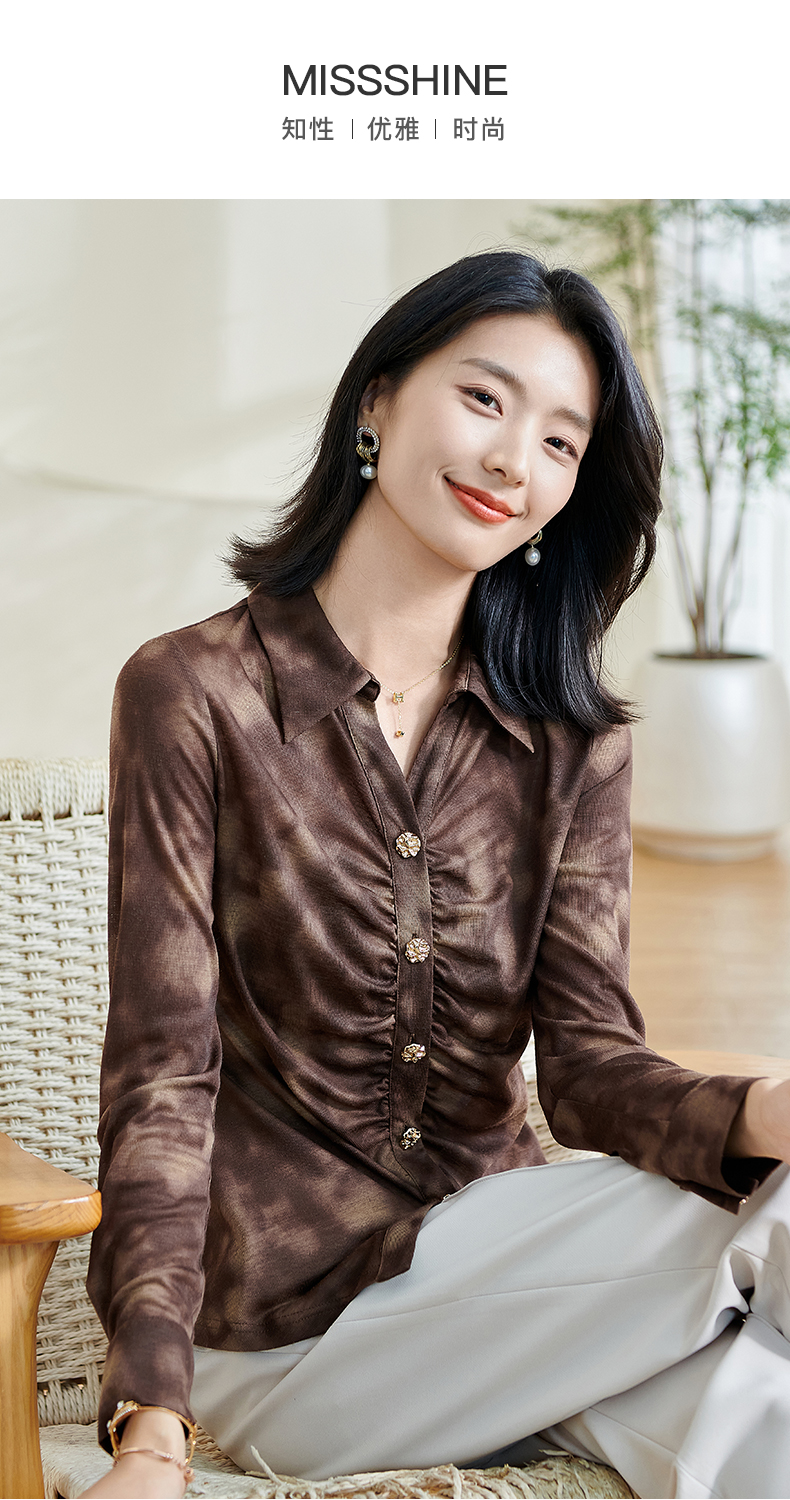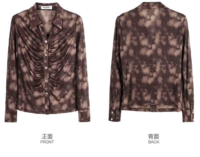 米思阳2026春季新款别致设计感扎染衬衫褶皱修身弹力开衫上衣0034