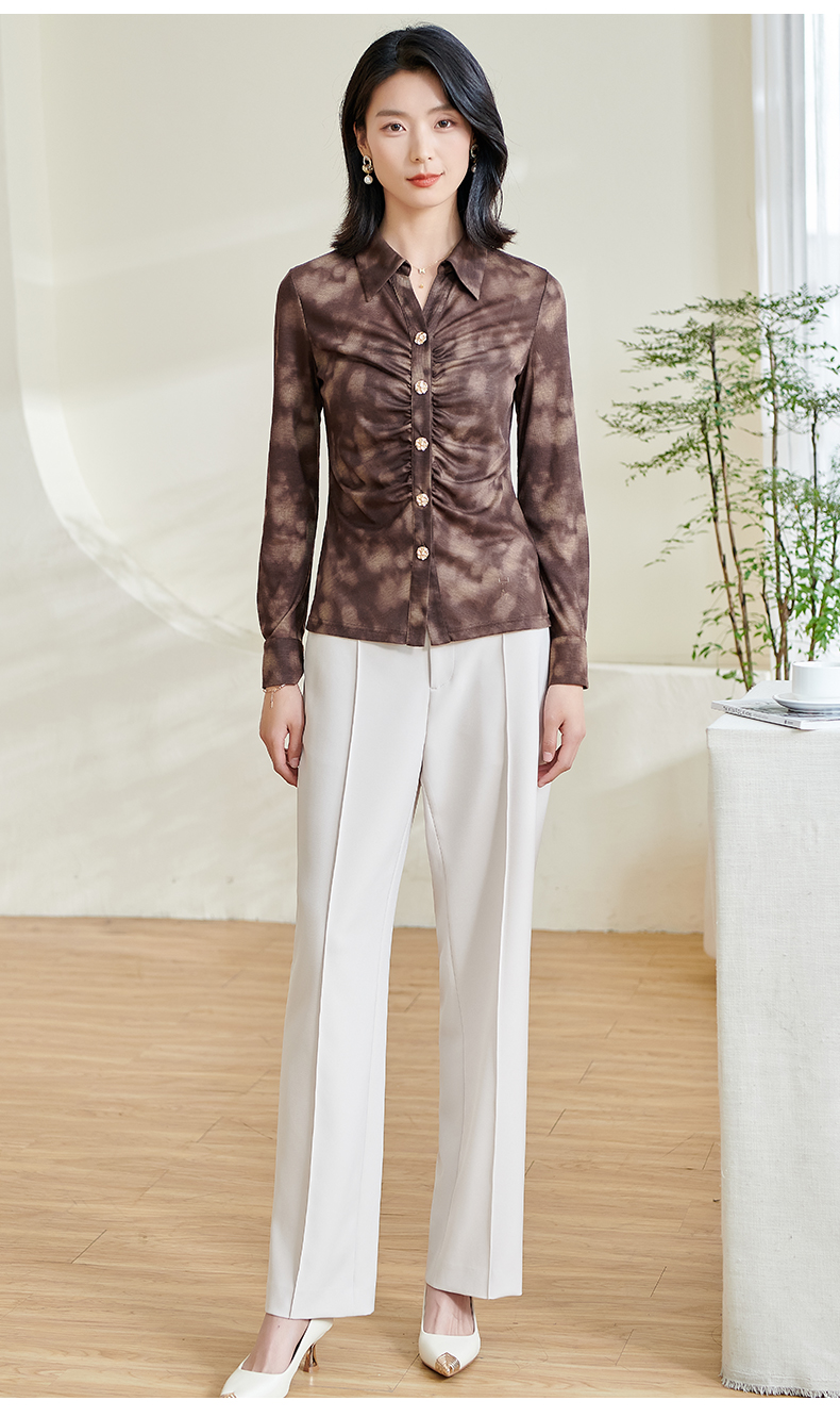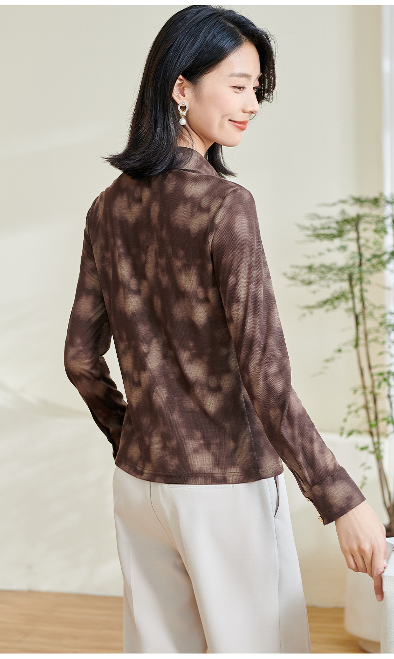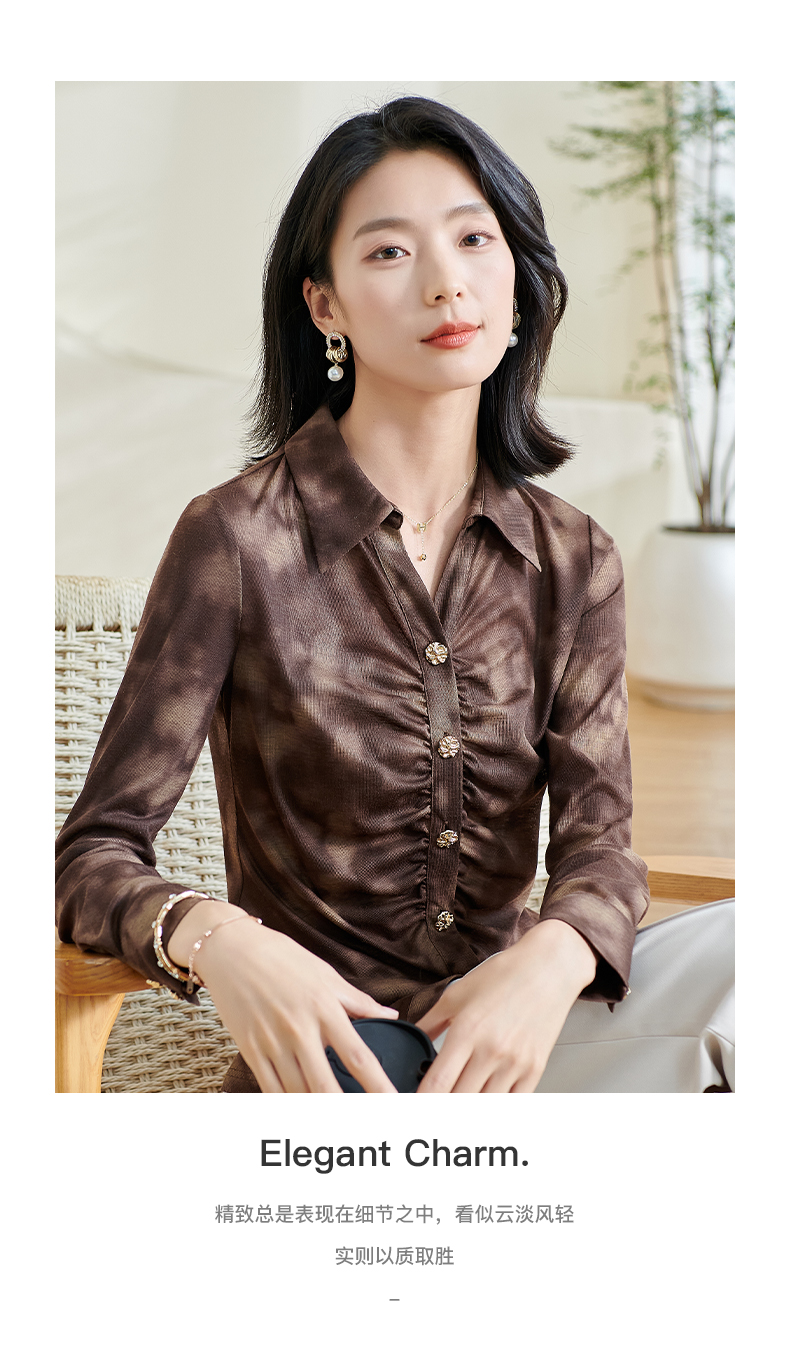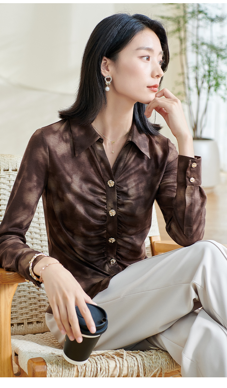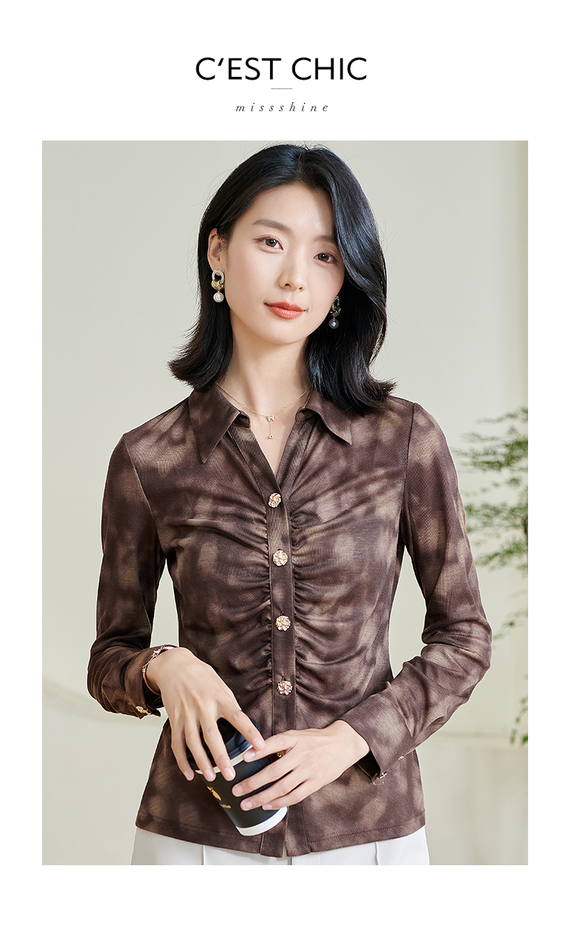 米思阳2026春季新款别致设计感扎染衬衫褶皱修身弹力开衫上衣0034
