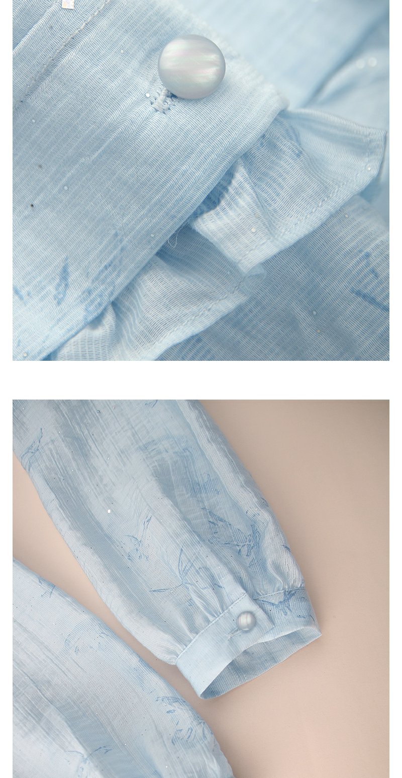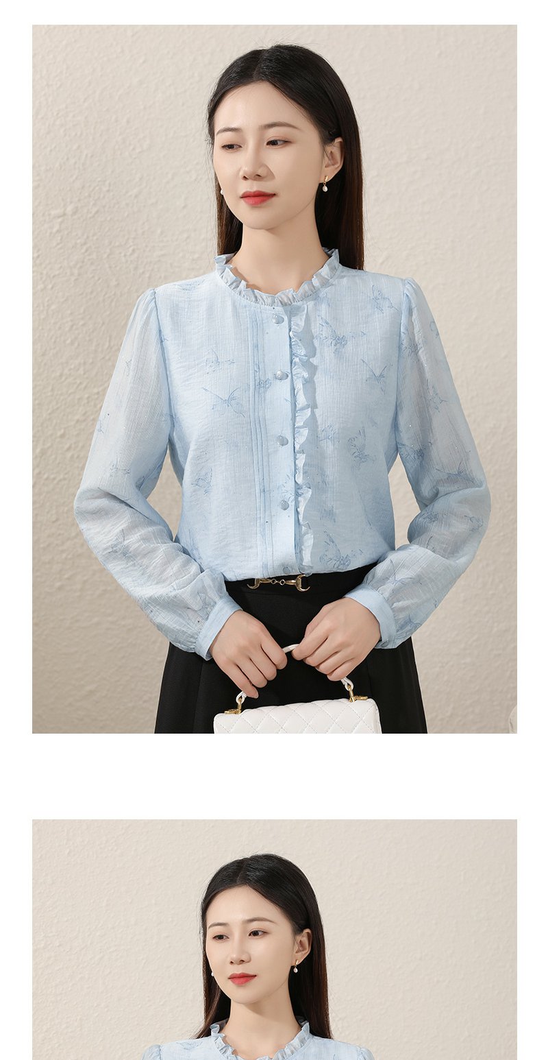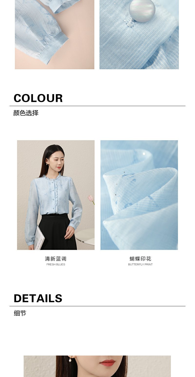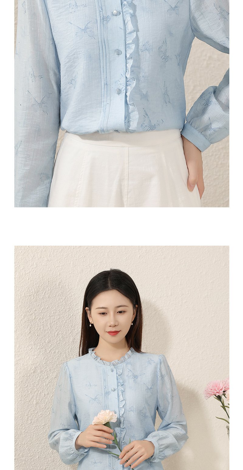 蓝色天丝上衣春季新款衬衫今年流行漂亮百搭小衫