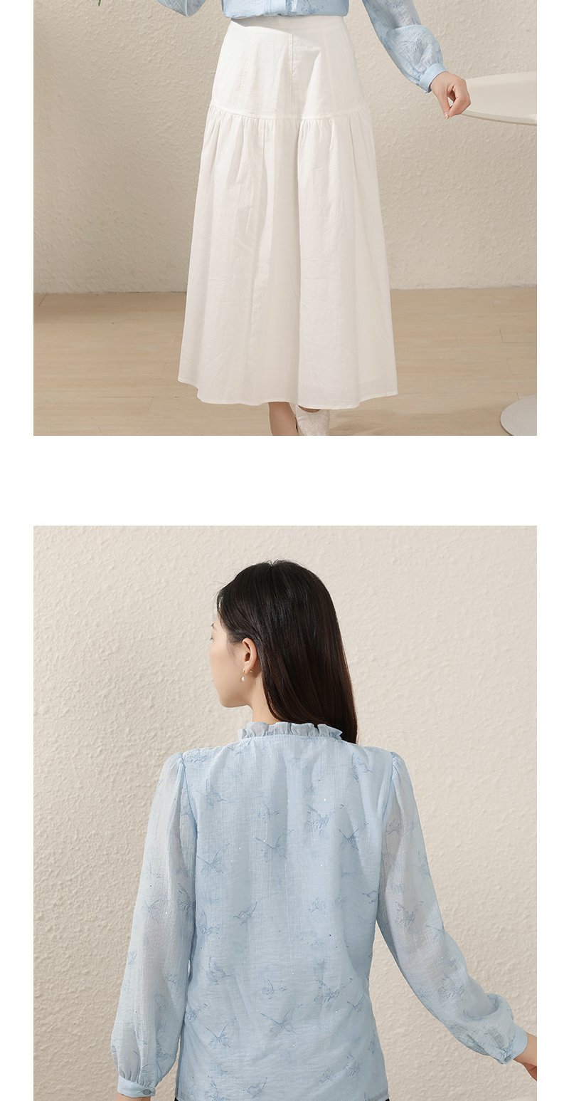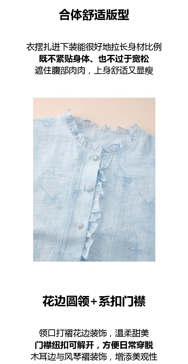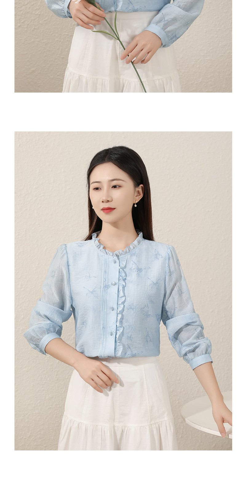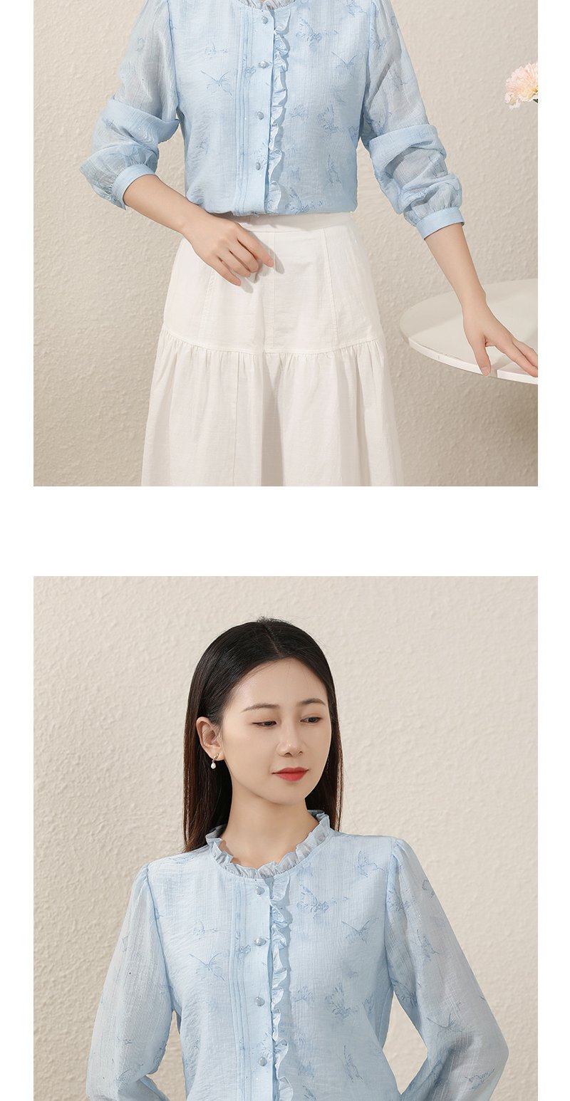 蓝色天丝上衣春季新款衬衫今年流行漂亮百搭小衫
