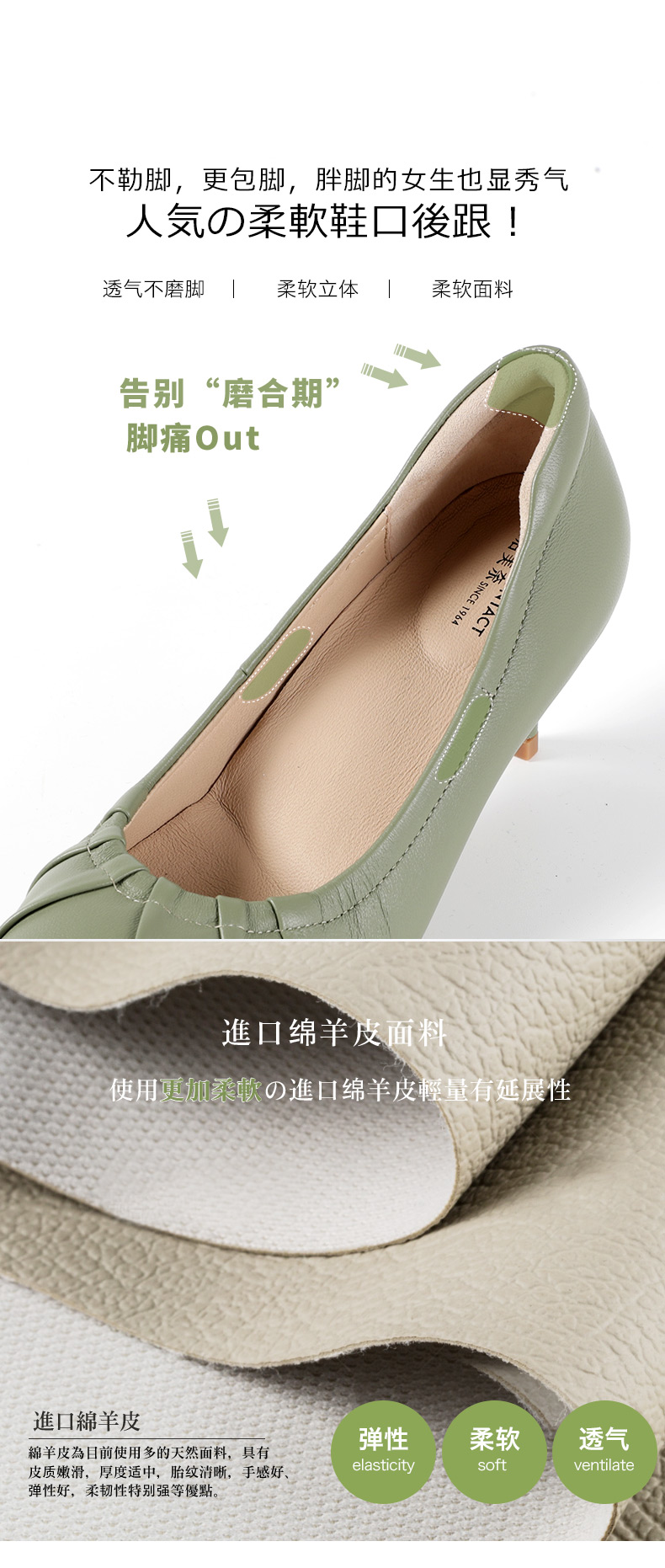 ARCHCONTACT安启美奈尖头全羊皮小高跟单鞋52714-1