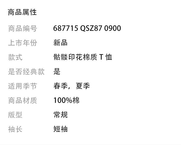 ALEXANDER MCQUEEN 亚历山大麦昆 男士圆领短袖T恤 白色 687715 QSZ87 0900