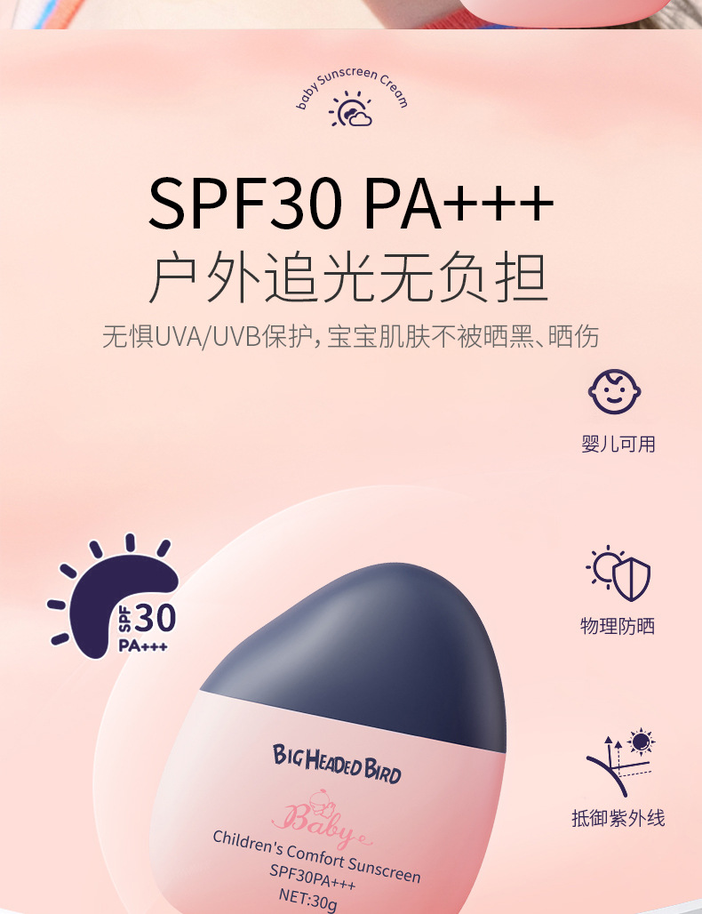 【物理防晒,儿童专研】婴儿防晒霜 儿童防晒乳 保湿隔离防紫外线 专为婴儿娇嫩肌肤设计-QQ