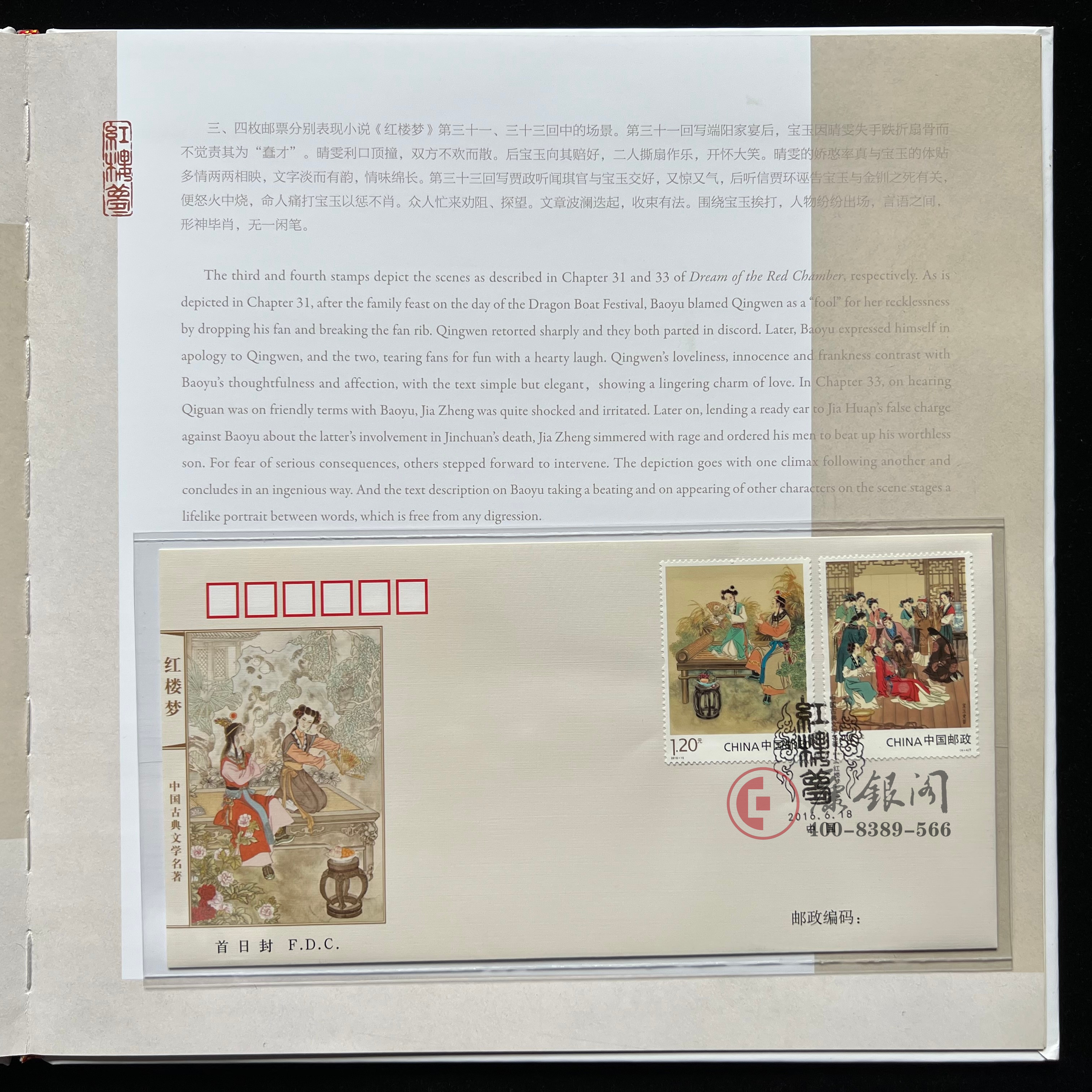 【邮册内含】《中国古典文学名著--红楼梦(二)》套票、小型张、大版票、《竹》主图四枚版个性化邮票、首日封一套两枚、型张封一枚。