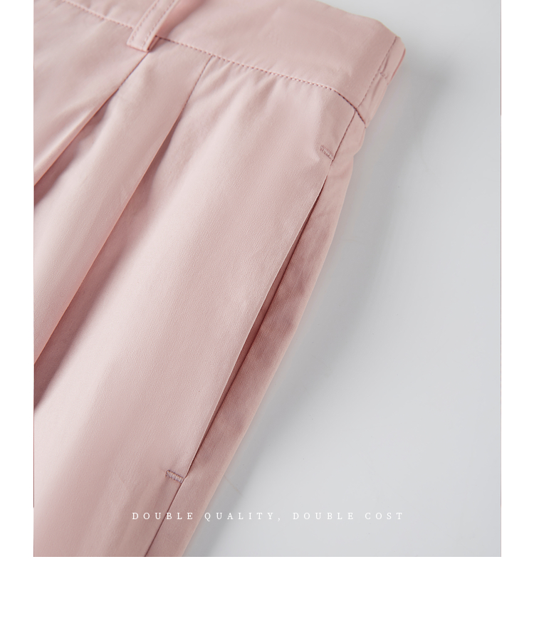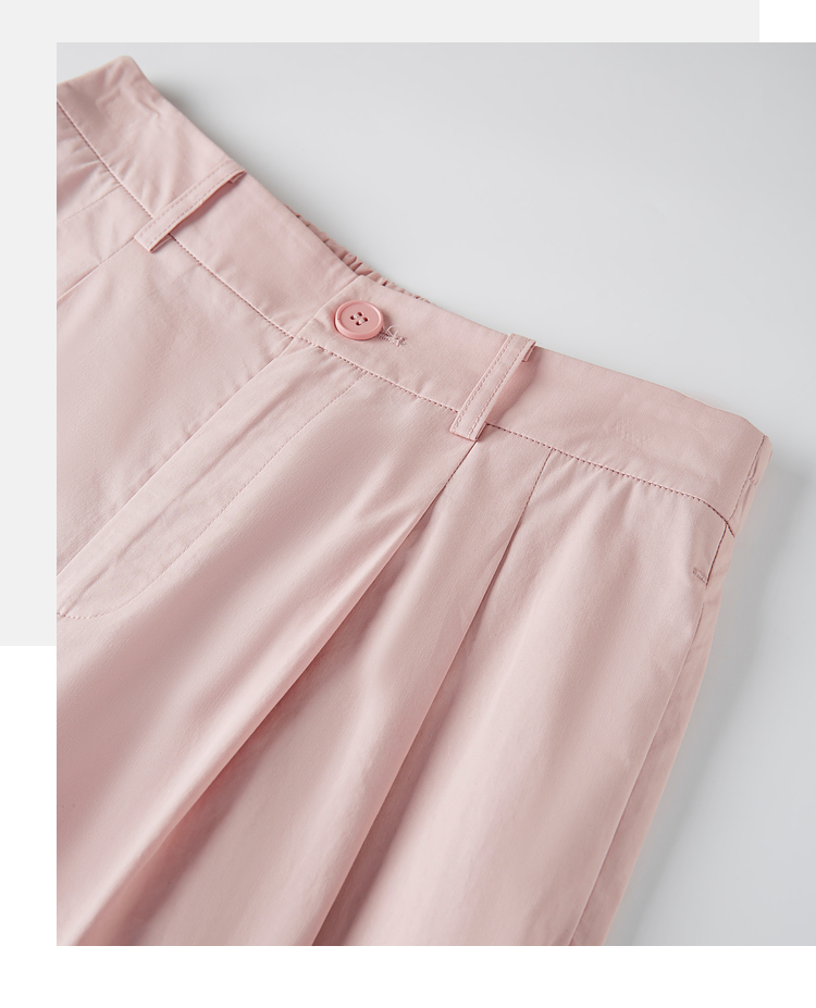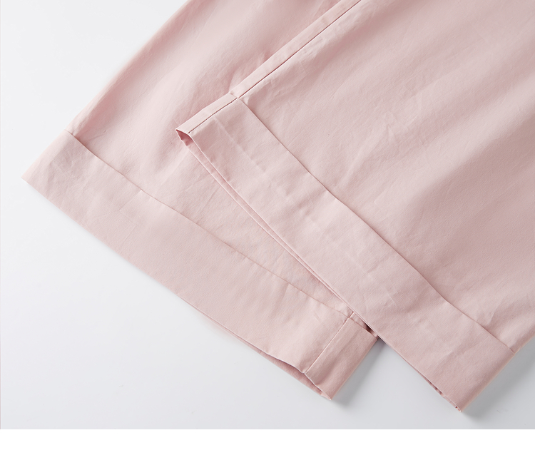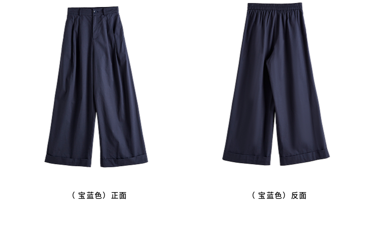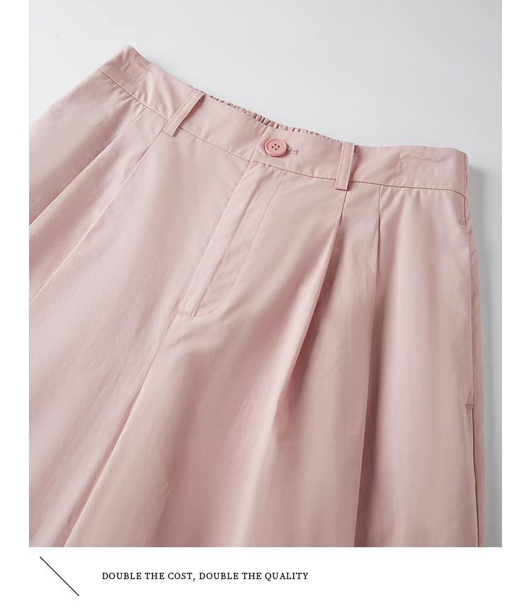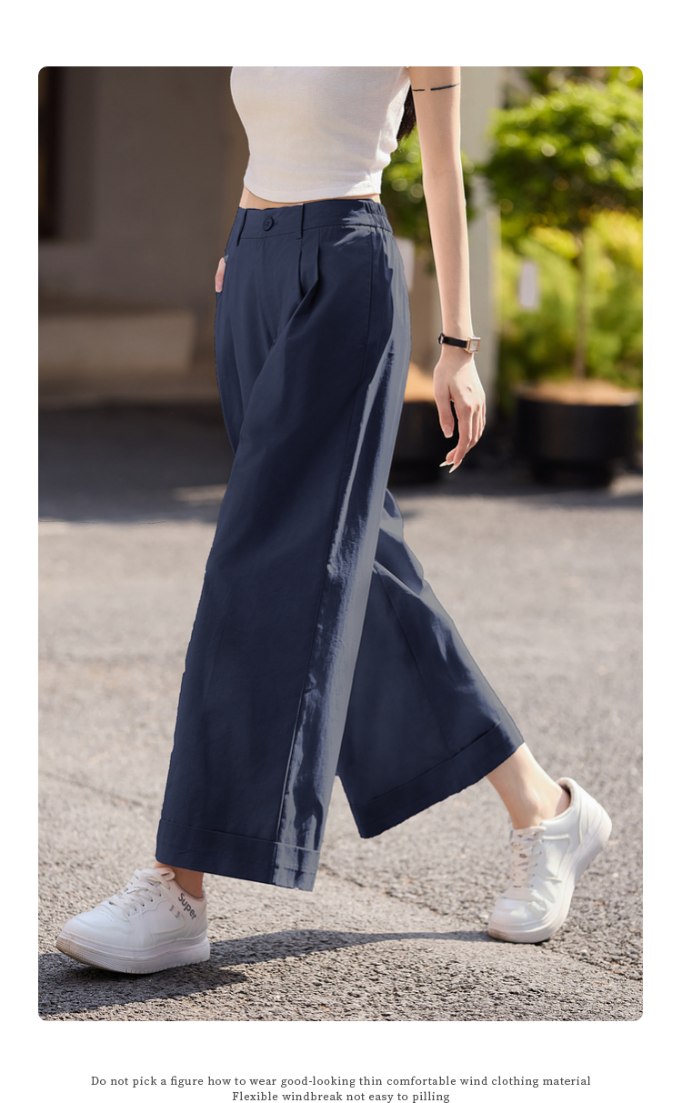 【专属特价】熙世界100%纯棉九分阔腿裤女夏季薄款通勤高腰宽松卷边直筒休闲裤