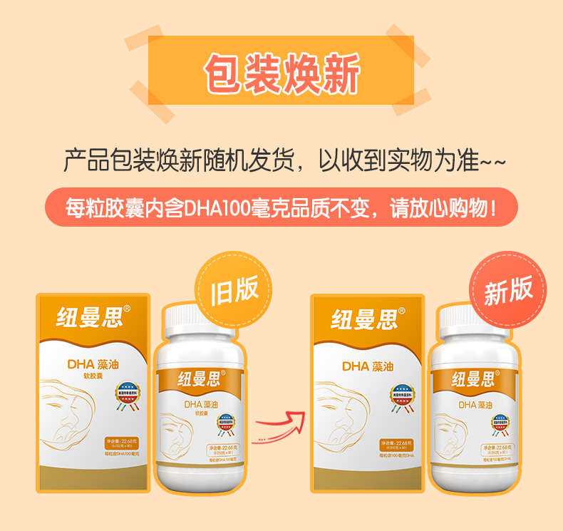 纽曼思原装进口藻油DHA婴幼儿儿童型软胶囊90粒原纽曼斯(保质期至2027年4月12日) )