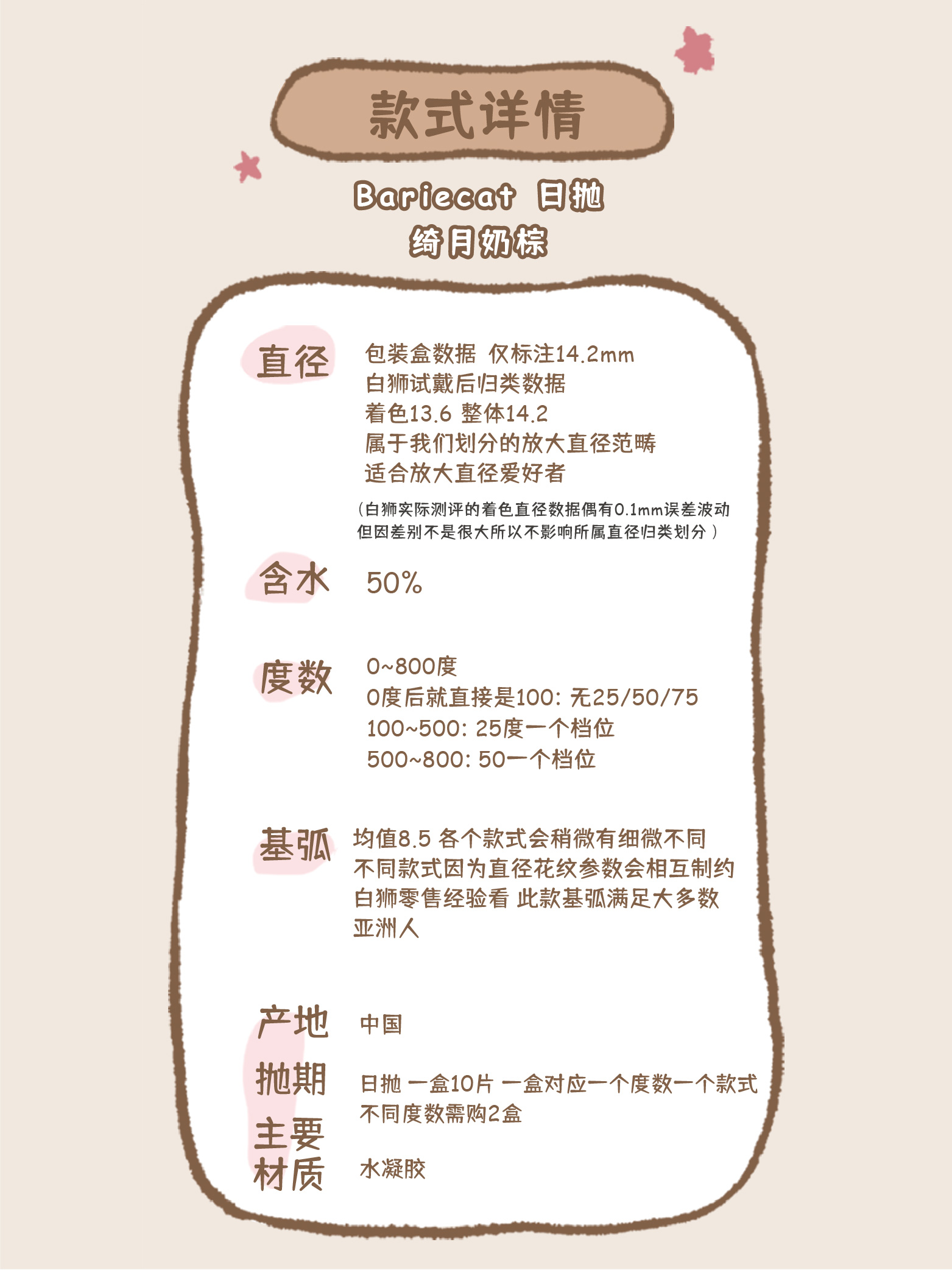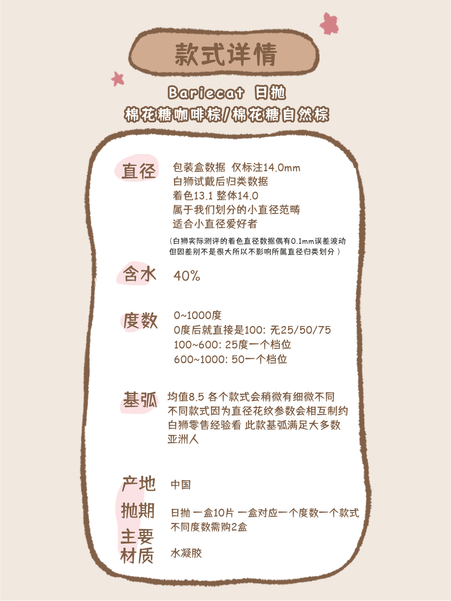 Bariecat日抛合集链接 · 棉花糖咖啡棕&棉花糖自然棕&樱栀桃褐&暖阳蜜棕&绮月奶棕&星罗橘棕 · 日抛 一盒十片装 · 吉林瑞尔康工厂