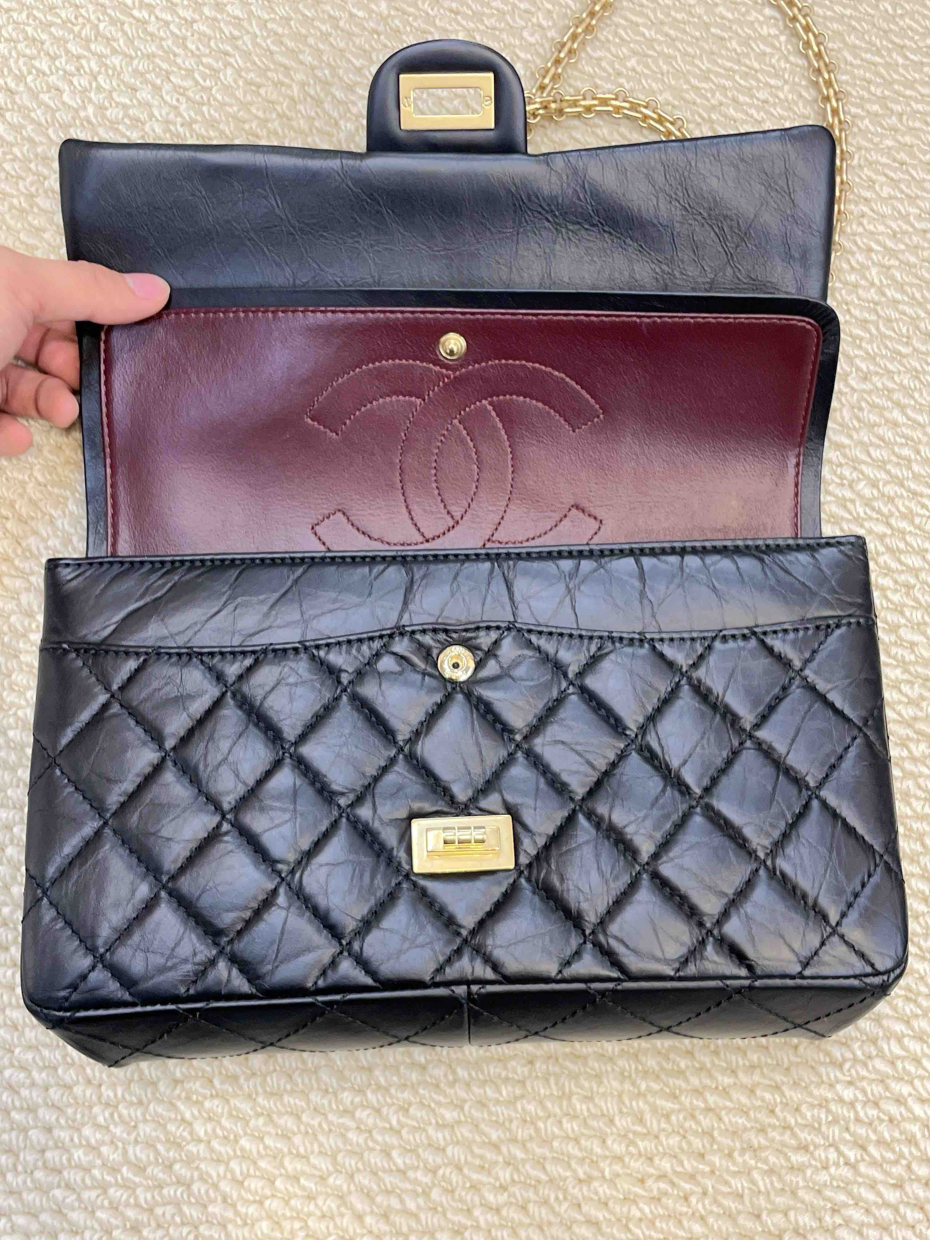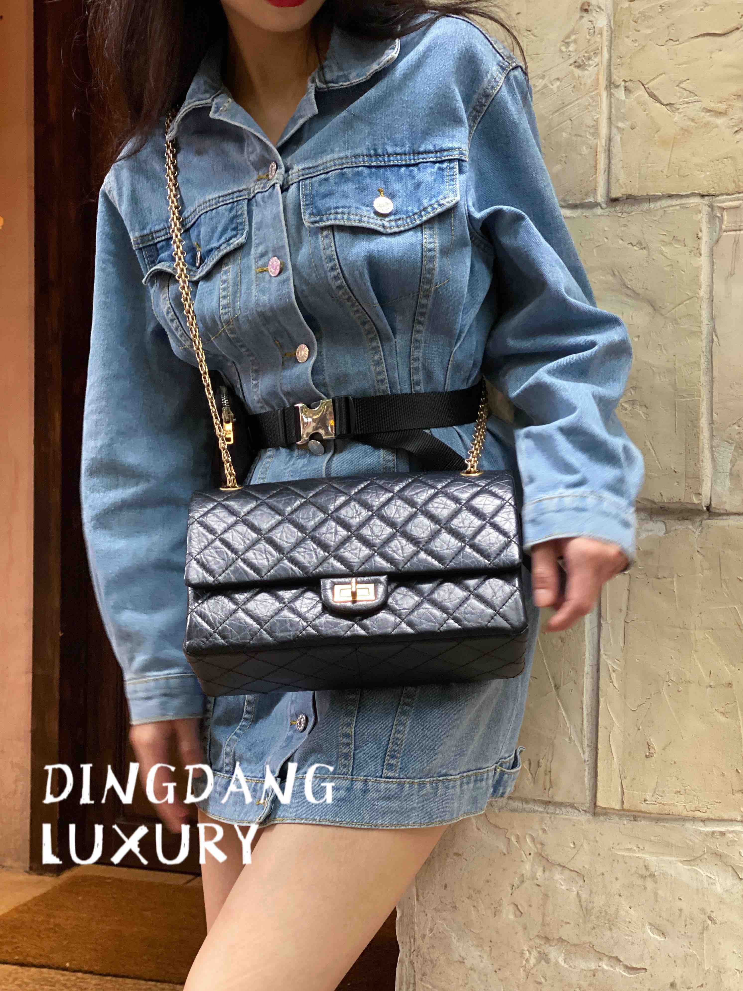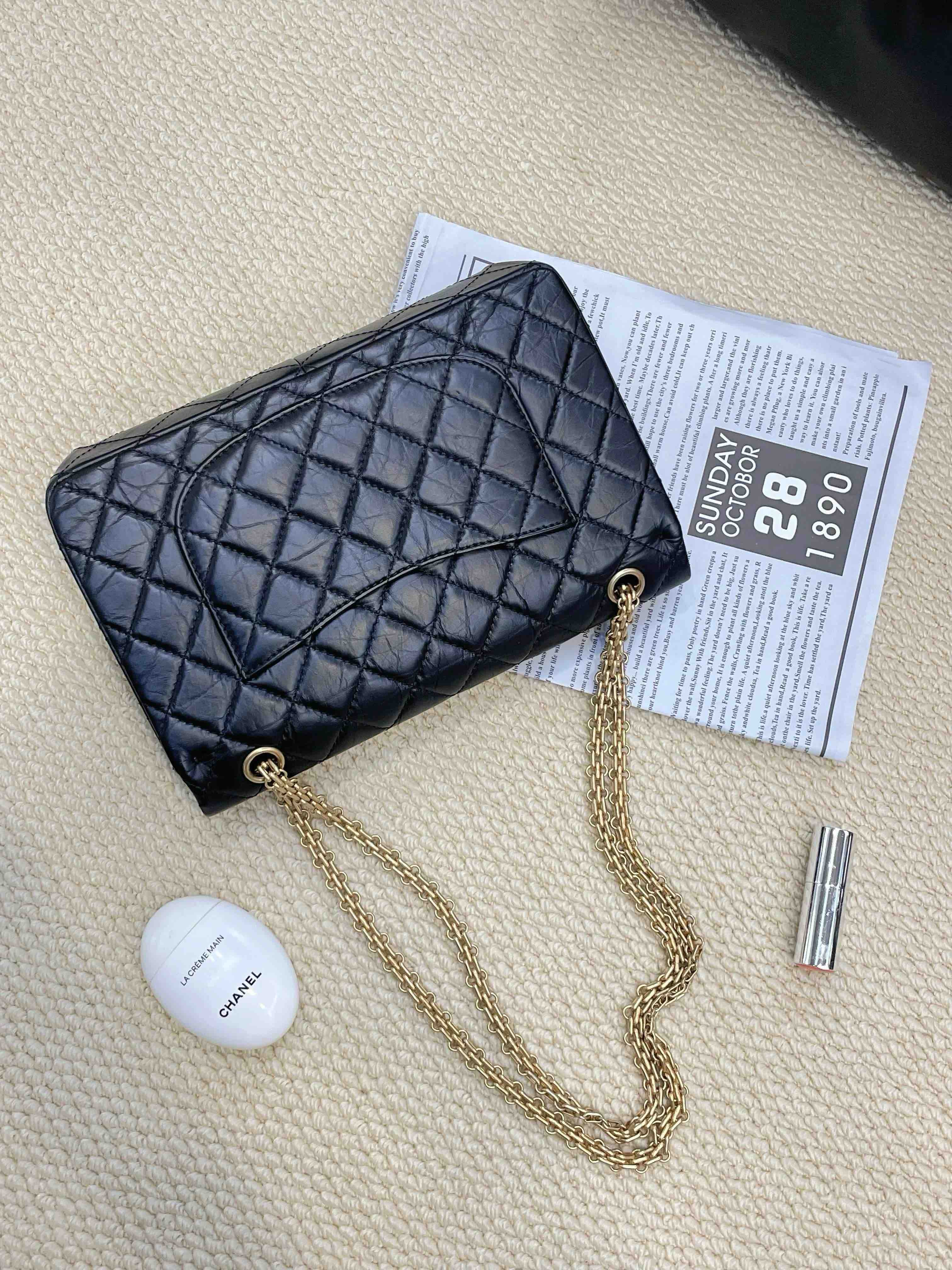 Chanel 2.55 油蜡牛皮 黑金 中号 单肩包