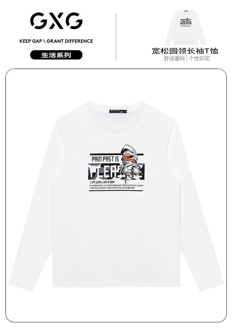【长袖T恤合集】GXG男装秋季卡通小熊印花男士百搭圆领长袖t恤K&C