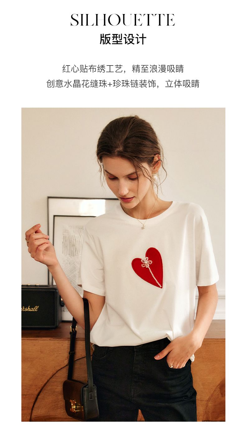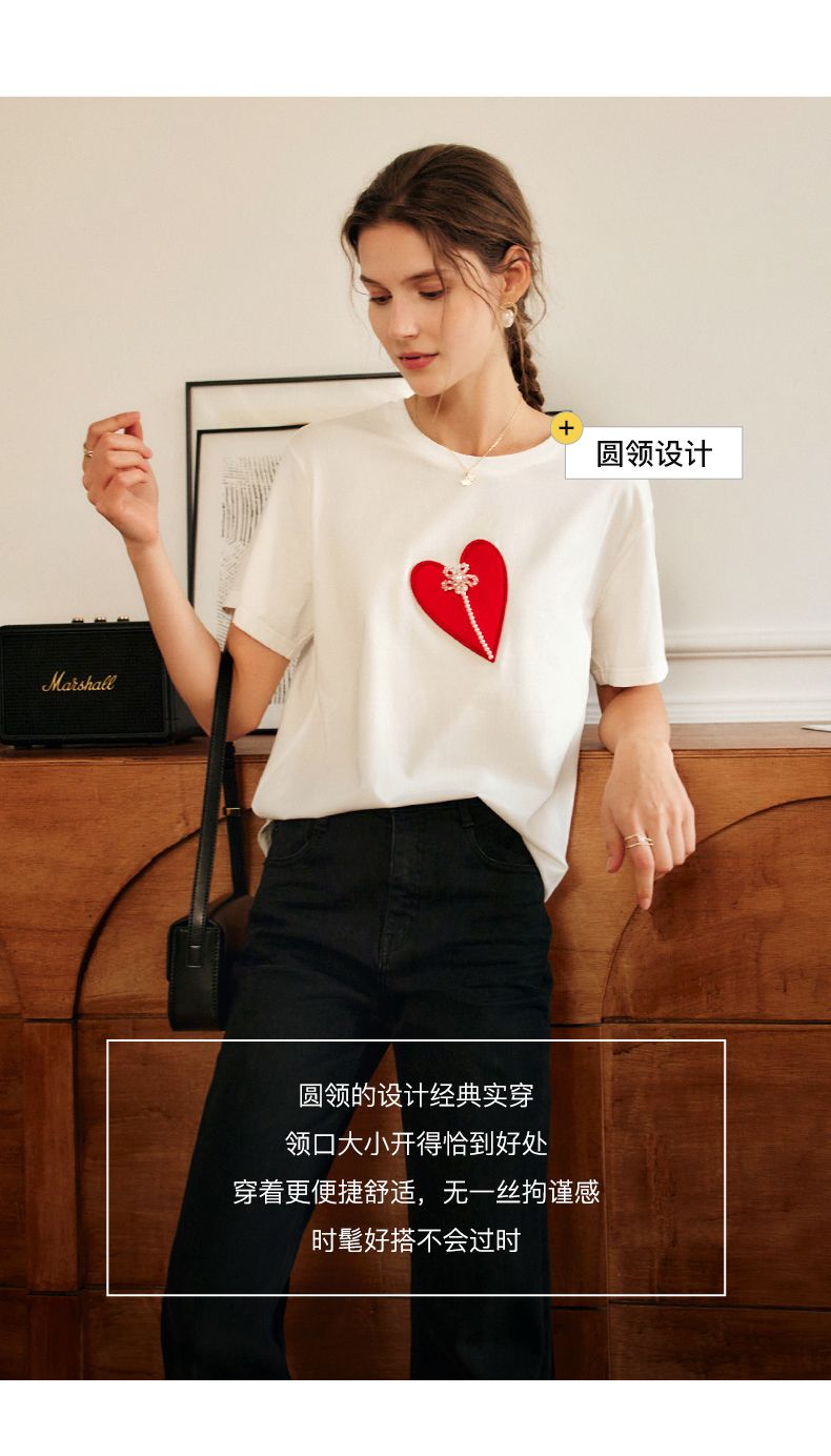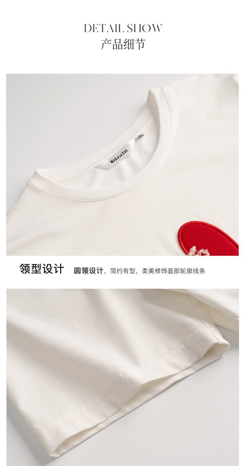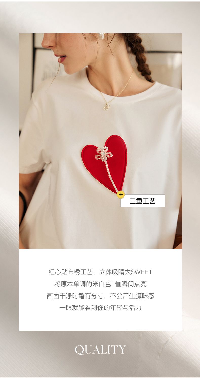 欧芮儿白色T恤女春季2022新款宽松显瘦洋气爱心刺绣短袖休闲上衣