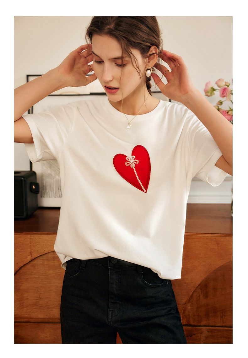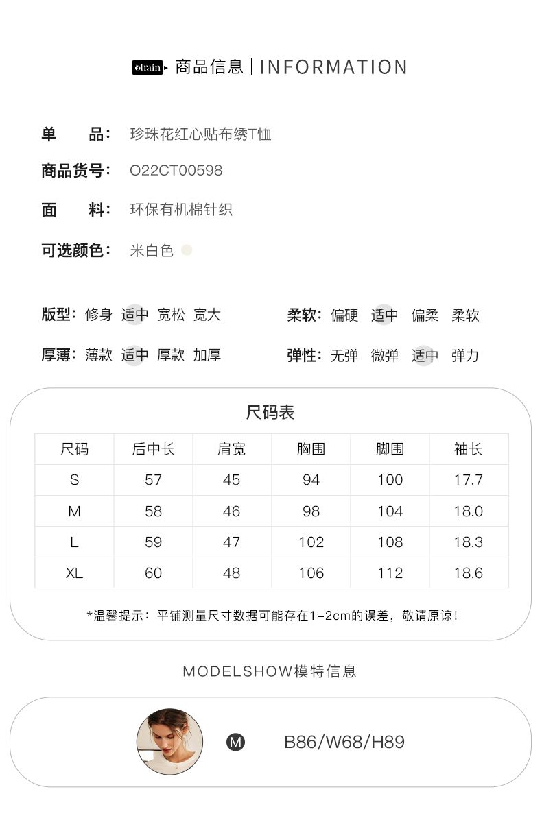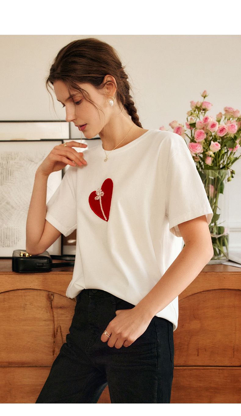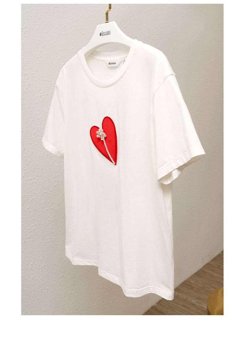 欧芮儿白色T恤女春季2022新款宽松显瘦洋气爱心刺绣短袖休闲上衣